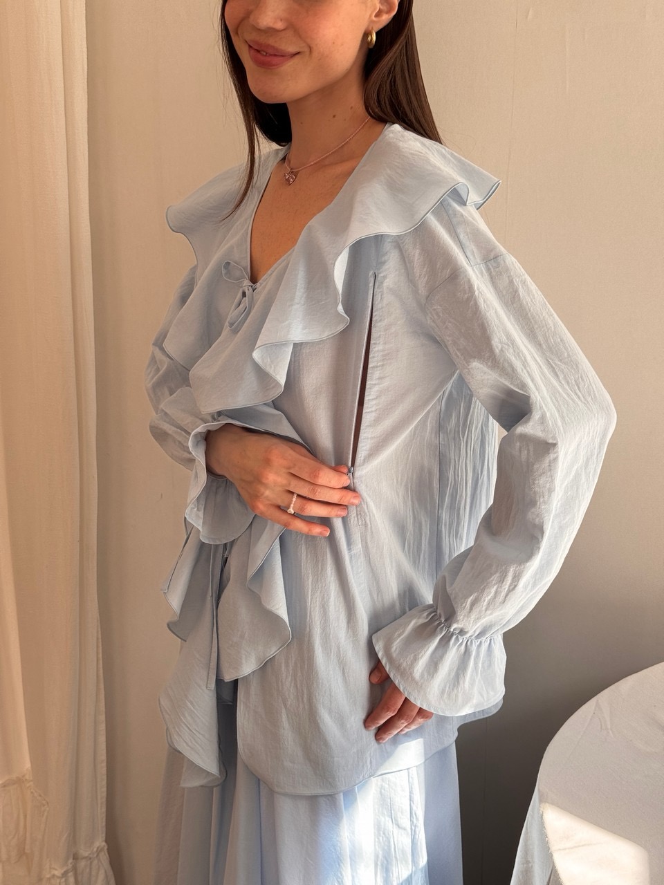 Блуза из невесомого хлопка батиста с легким крэш-эффектом и изящными воланами сделает ваш образ нежным и изысканным. Блуза на завязках, в рельефах вертикальные молнии для комфортного кормления малыша грудью. Вы легко сможете заправить блузу, оставив воланы навыпуск, что сделает ваш образ легким, волнующим и романтичным. Блузка выполнена из натурального хлопка - ткань дышит, не вызывает аллергии и подходит для самых жарких дней. Рекомендуем стирать при 30 градусах на коротком цикле. После стирки встряхните. Не пересушивайте блузку, чтобы облегчить глажку. Ткань с лёгким крэш-эффектом, не требует идеальной утюжки.
