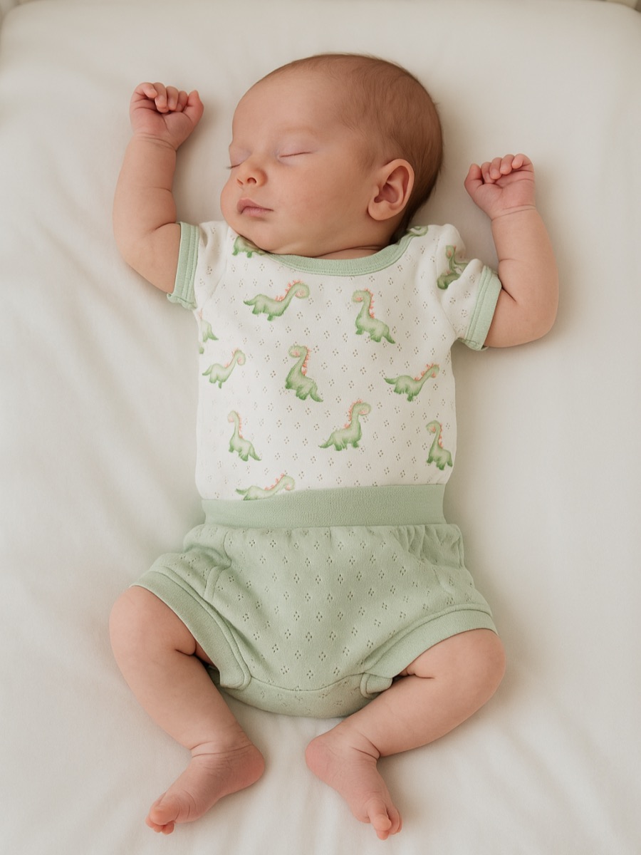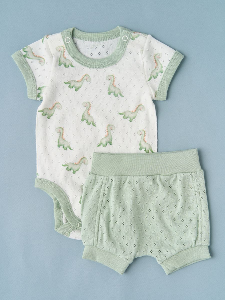 Универсальный летний комплект для малышей: бодик и шортики из 100% хлопка с ажурной перфорацией. Дышащий мягкий трикотаж дарит комфорт в жару, быстро отводит влагу и деликатно касается кожи. Ключевые фразы: универсальный комплект для новорождённого, детский летний комплект, ажурный перфорированный хлопок, бодик и шорты, набор для малыша, кулир 100% хлопок.
