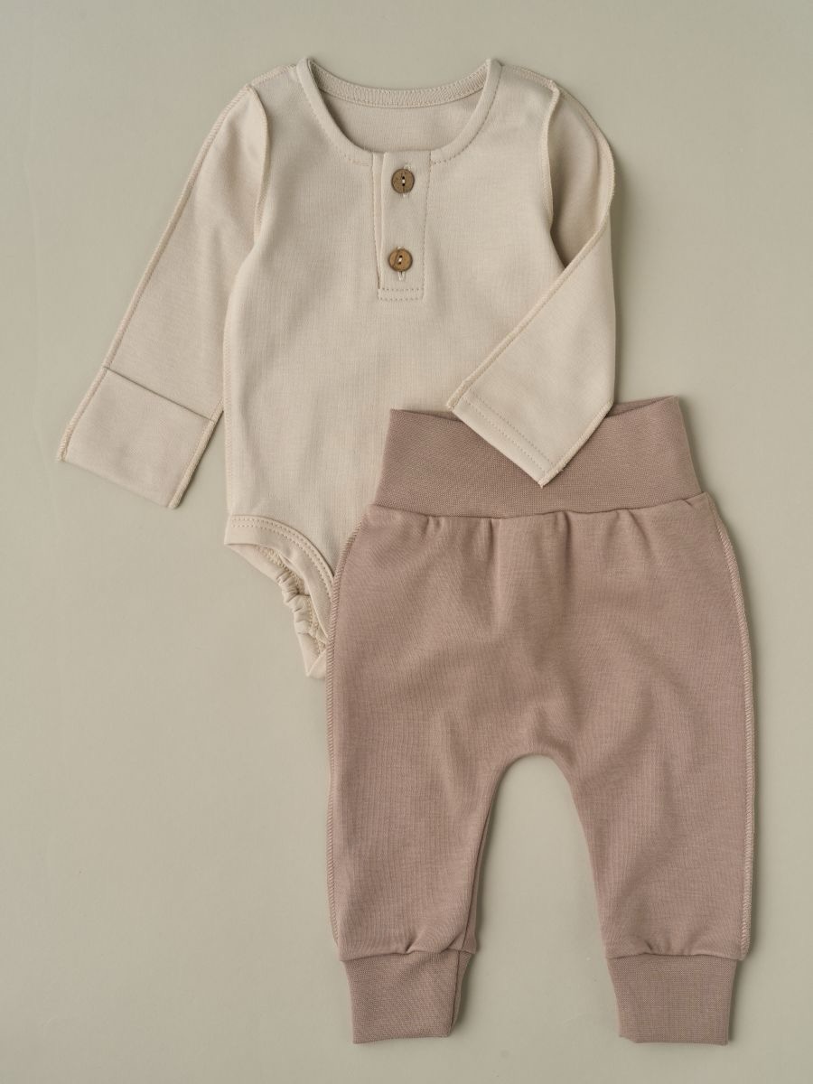 Комплект из 2 предметов — комфортный и практичный набор для малыша, состоящий из мягкого боди и удобных штанишек. Выполнен из 100% хлопка, что делает его гипоаллергенным, дышащим и приятным к телу. Боди с длинным рукавом и застёжками на кнопках удобно надевать и менять, а штанишки с мягким поясом обеспечивают свободу движений и комфорт в течение всего дня.