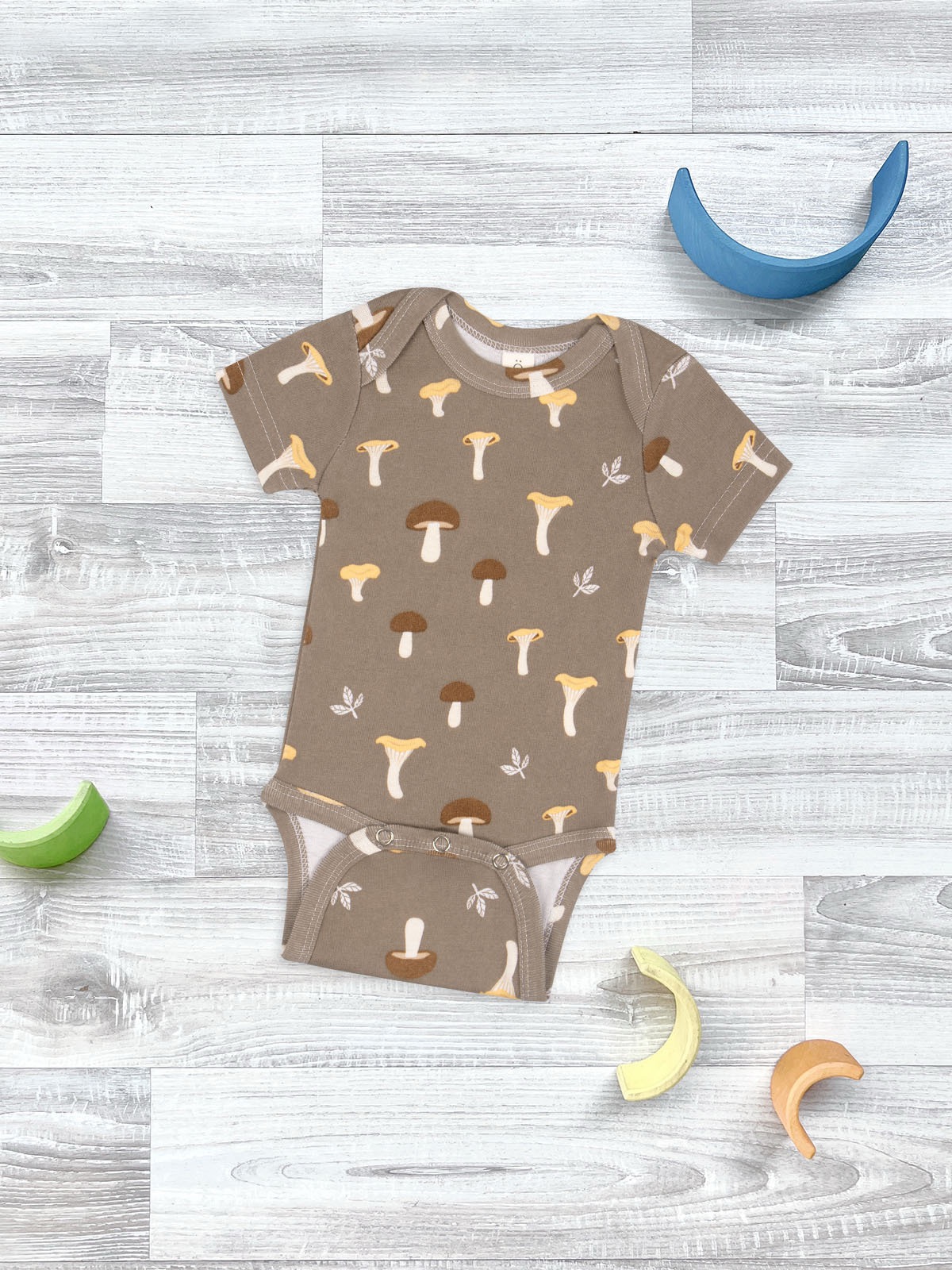 Боди Mjölk [мьёльк] Грибочки с коротким рукавом выполнен из тонкого 100% трикотажного хлопка. Плетение нитей в этой ткани менее плотное, чем у другой одежды из нашей коллекции, что позволяет комфортно использовать боди в качестве первого слоя.