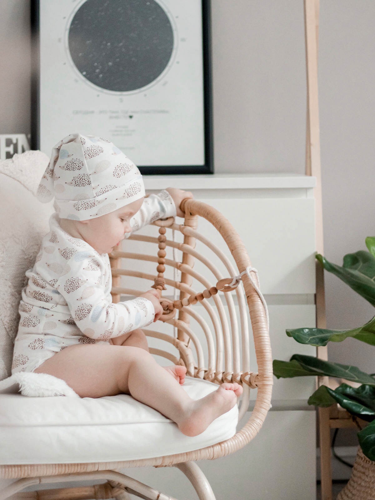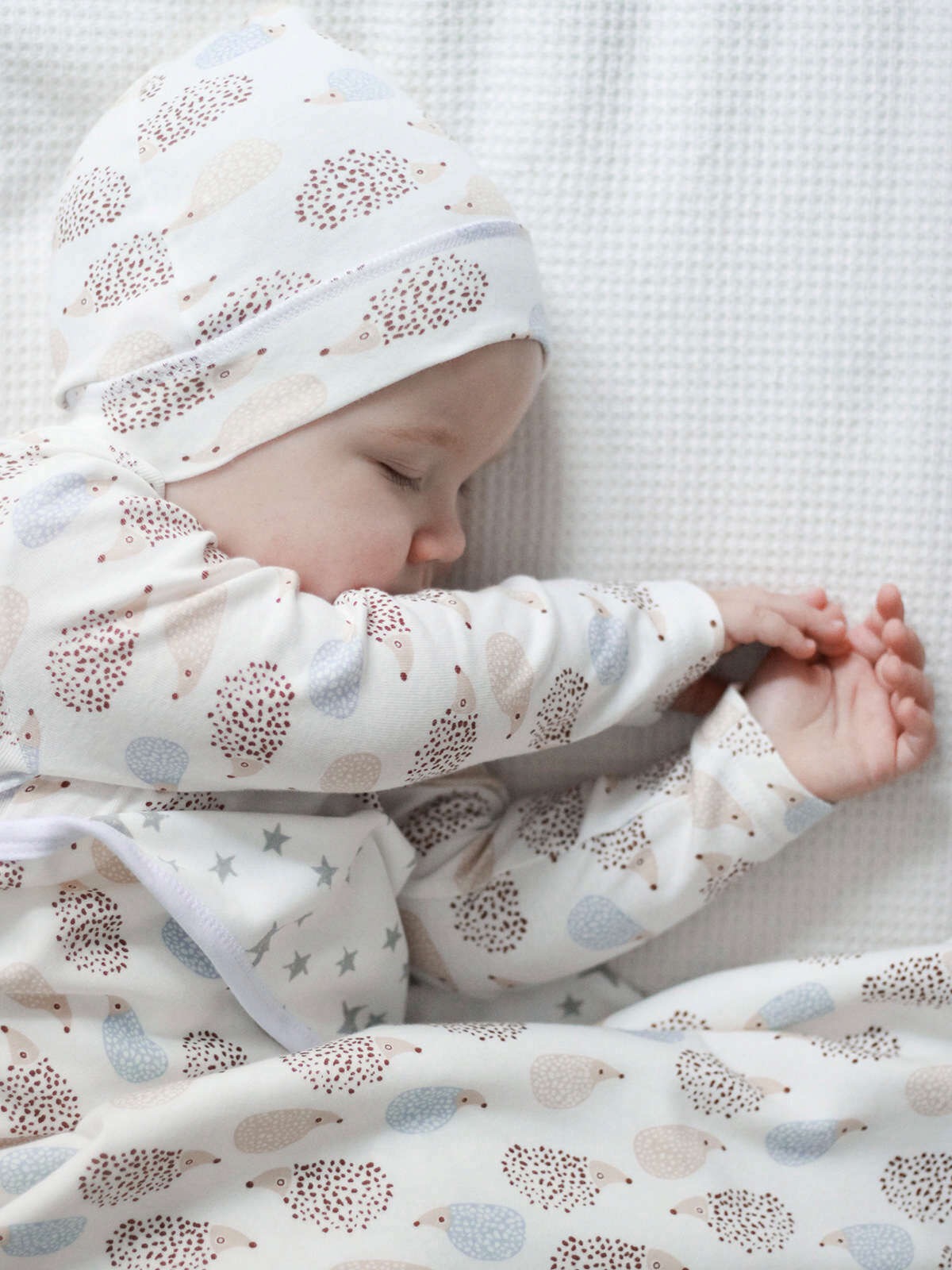 Боди Mjölk [мьёльк] растягивается по фигуре, ребёнку в нём не жарко, он не потеет. В такой одежде можно играть и спать круглый год, поддевать её под комбинезон или спальный мешок. Материал приятный на ощупь, эластичный, гигроскопичный, "дышит" и не вызывает аллергии. Кнопки расположены значительно выше их привычного месторасположения, что облегчает застёгивание изделия на малыше. В сопутствующих товарах можно подобрать изделия в комплект с таким же принтом: мягкую шапочку с узелком, двусторонний плед, сет пелёнок в тон или яркий комбинезон.