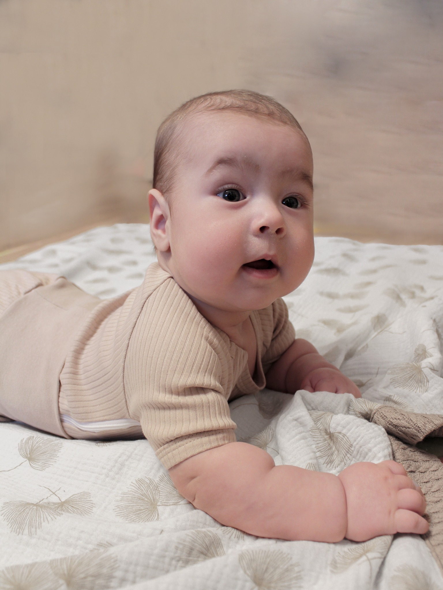 Молния нараспах дает возможность спокойно переодеть малыша не беспокоя его.