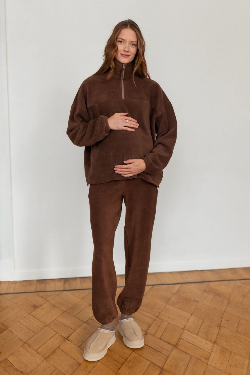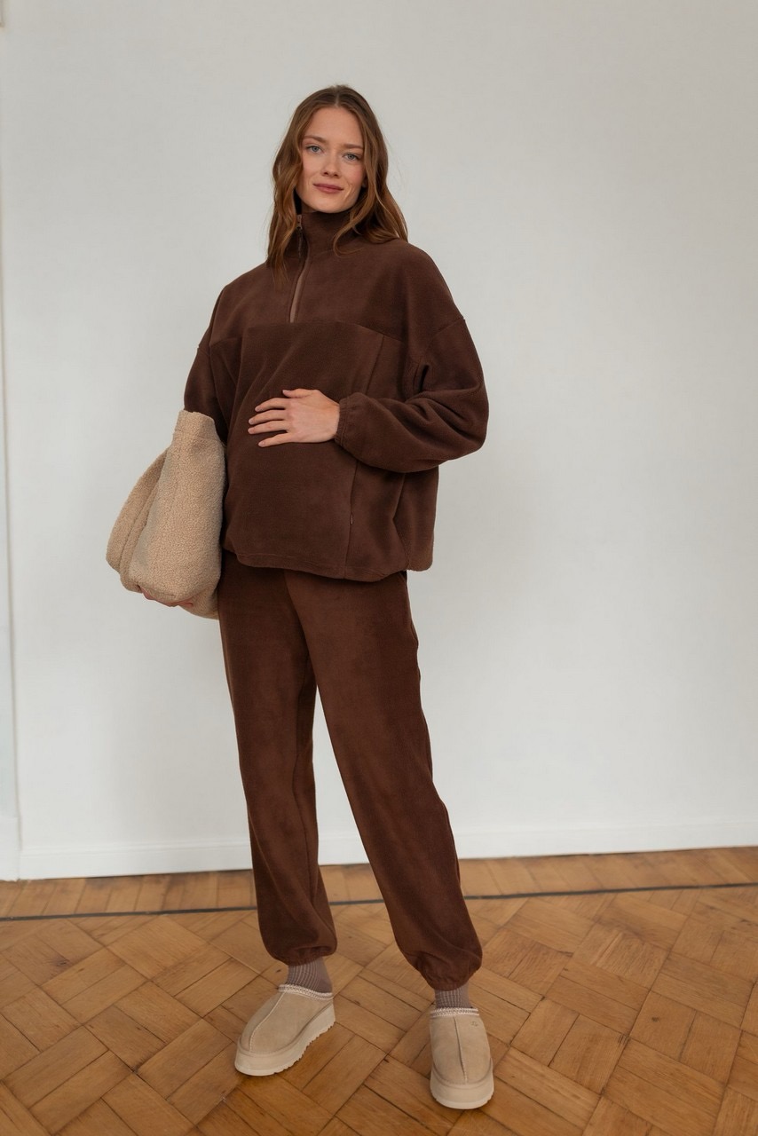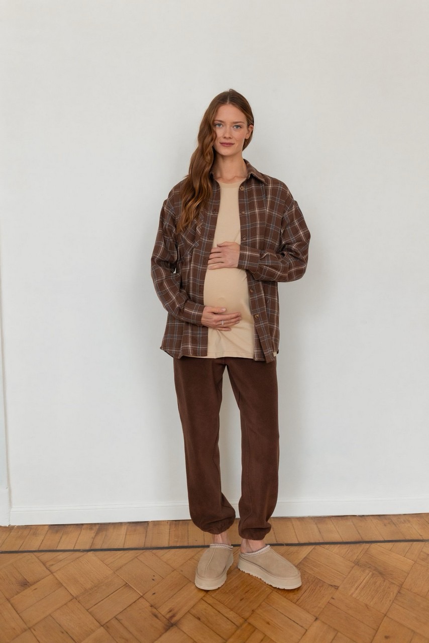 Стильные утепленные брюки для беременных из плотного, двухстороннего, трикотажного полотна. Пушистый ворс напоминающий флис с лицевой стороны и гладкая, хлопковая, сторона к телу. Ткань хорошо сохраняет тепло, устойчива к деформациям.
