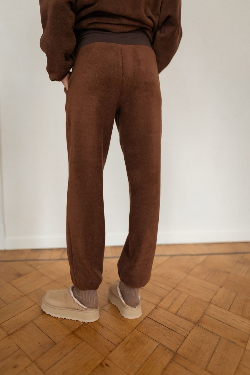 Параметры модели: брюки в цвете латте: рост 170, грудь 84, талия 60, бедра 90, на модели брюки в размере 42; брюки к в цвете шоколад: рост 177, грудь 84, талия 64, бедра 92, на модели брюки в размере 42