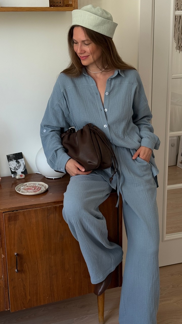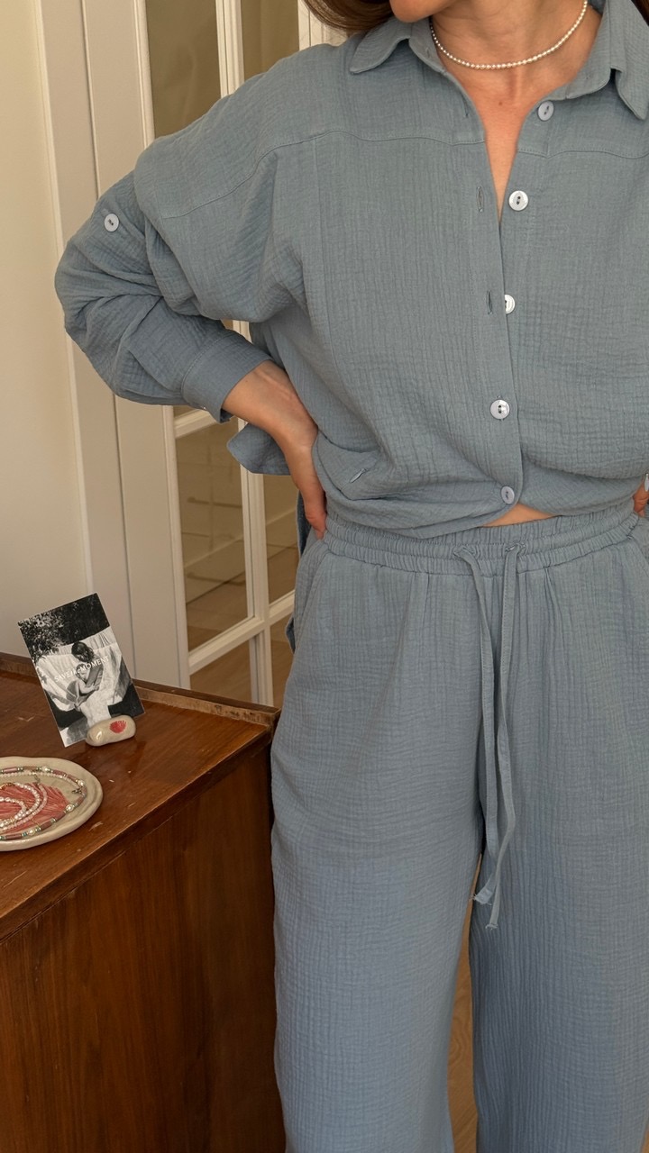 Стильные брюки из хлопкового муслина свободного кроя, которые так любят наши мамы. Классическая посадка на талии сделает вашу фигуру стройнее, а ноги длиннее. Пояс на резинке с кулиской, а по бокам удобные карманы.Наши брюки невероятно мягкие и комфортные. Не зря муслин активно используется для изготовления детских вещей. Он не вызывает раздражения кожи, невесомый и гигроскопичный. Брюки и блузка из муслина - просто идеальная пара для дома и отдыха. Этот костюм выбирают мамы, которые заботятся о себе.