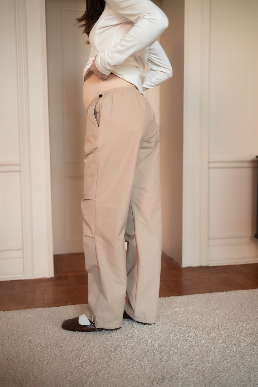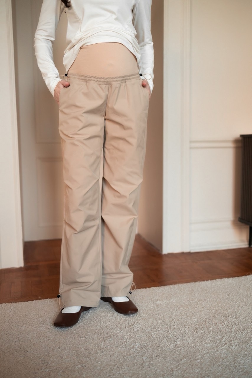 Так, в дождливую погоду, затянув резинку, ваши брюки останутся сухими и чистыми. Для беременных сделан вариант с резинками-утяжками и хлопковой трикотажной манжетой.