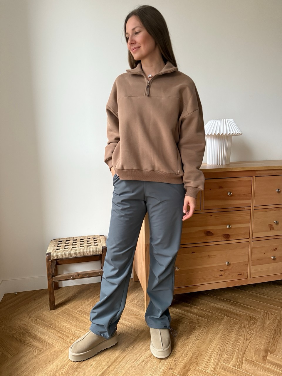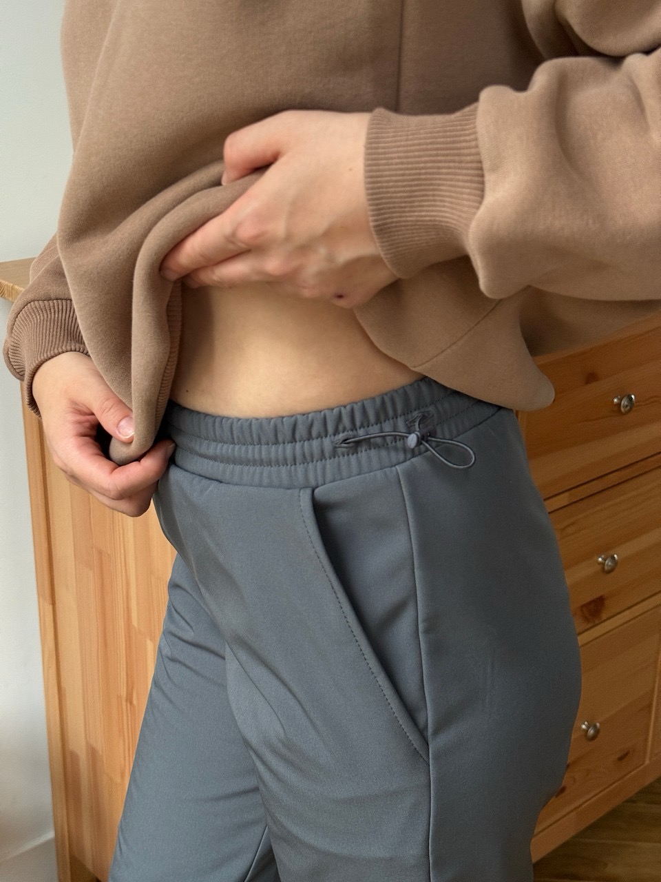 Брюки с удобными карманами, внизу утяжки чтобы носить модель с любой обувью. Температурный режим +5 -10. Поддевайте под карго легинсы с мягким поясом от нашего бренда и носите брюки в самый сильный мороз.
