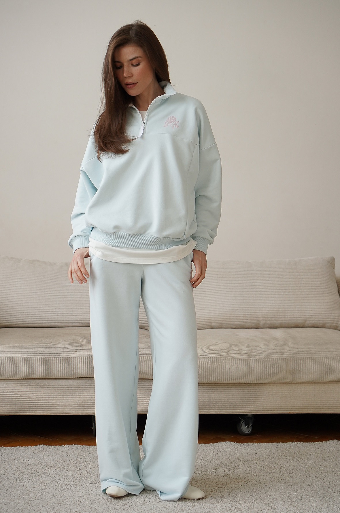 Свободные брюки из премиального футера с эффектом велюра для ваших стильных, расслабленных образов. Сочетайте с футболкой, джемпером, свитшотом, худи или олимпийкой из нашей коллекции. Рекомендуем стирать жидким средством, чтобы сохранить мягкость изделия.