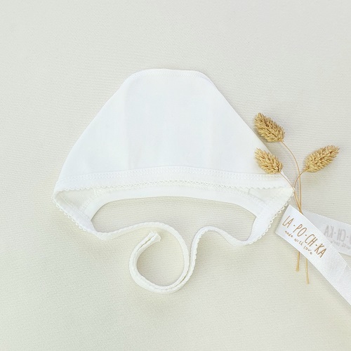 Нежный чепчик для малышей, выполненный в классическом белом цвете и дополненный аккуратной кружевной окантовкой. Подходит для повседневной носки и особенно уместен для комплекта на выписку — выглядит торжественно, но очень деликатно.