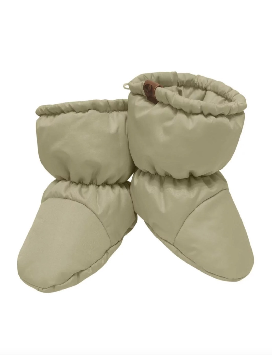 Демисезонные пинетки Dew отлично подходят на демисезонную погоду и зимой под конверт. Наполнитель холлофайбер (200гр) прекрасно согревает ножки, а курточная ткань с водоотталкивающей пропиткой не даст им промокнуть. Подклад из 100% хлопка.