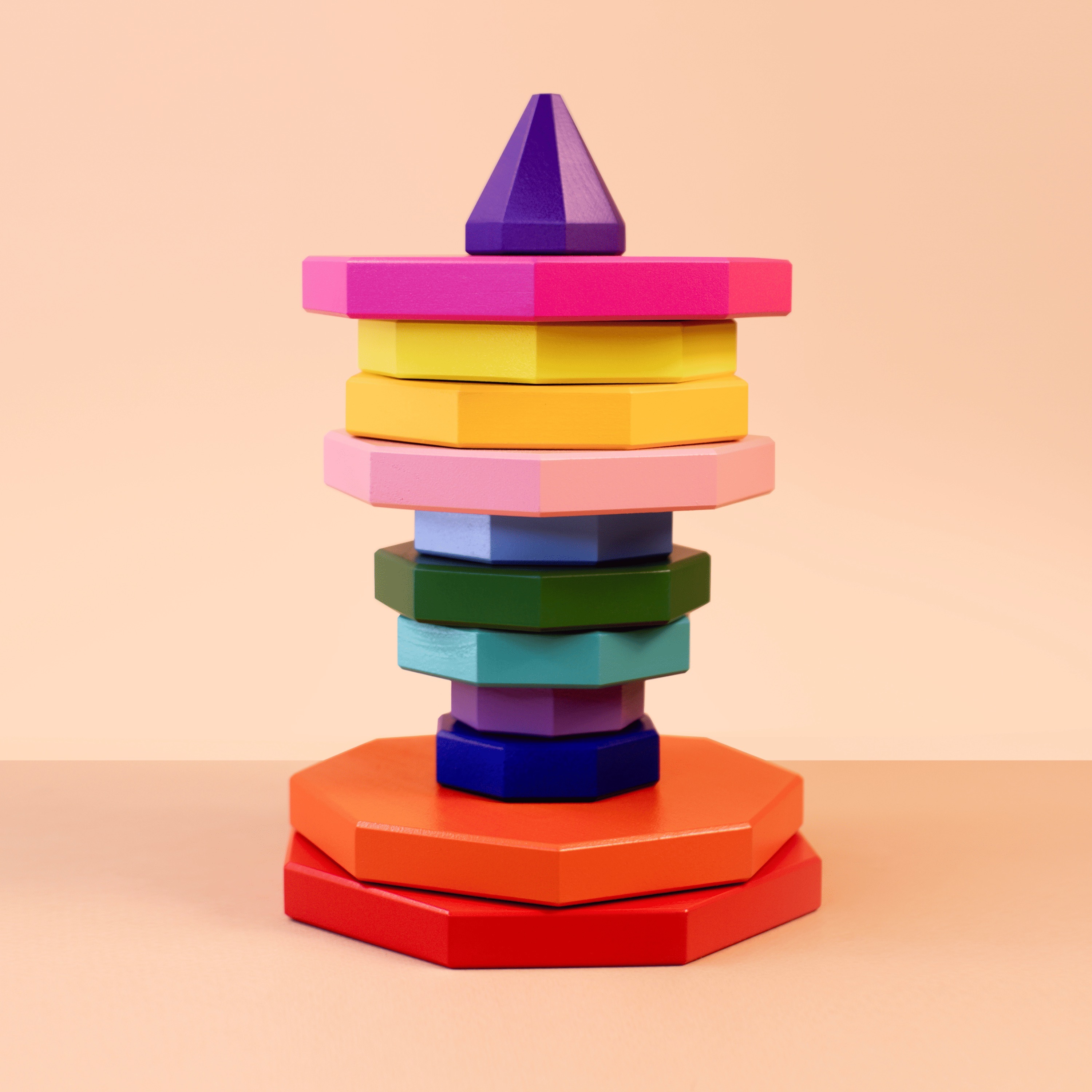 Деревянная восьмиугольная пирамидка - первая игрушка ребенка. Пирамидка Kibooq состоит из 12 деталей. Данный тип пирамидки будет разнообразен в игре.