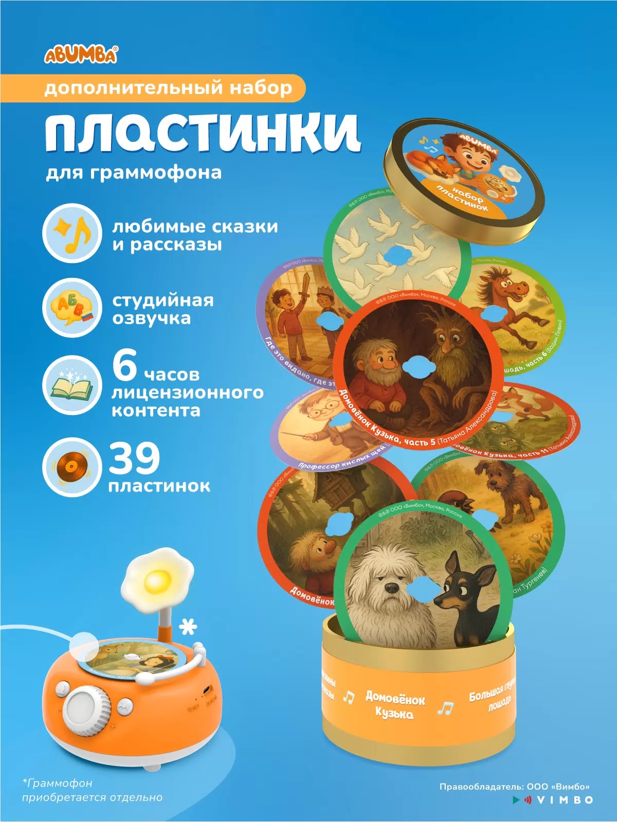 Погрузитесь в мир сказочных приключений, увлекательных рассказов и весёлых стихов с дополнительным набором карточек к музыкальной игрушке детскому граммофону Abumba! Это одна из тех интерактивных игрушек, с которой ребёнку никогда не будет скучно.