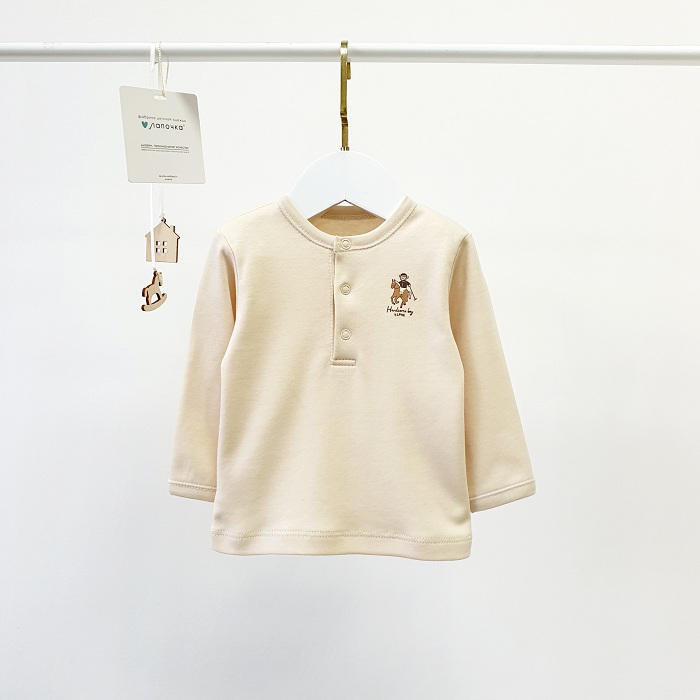 Джемпер для малыша из мягкого трикотажа. Застёжка на груди на три кнопки помогает удобно переодевать ребёнка. Круглая горловина аккуратно прилегает к шее и не давит. Длинные рукава и мягкие манжеты сохраняют тепло. Небольшой рисунок спереди добавляет аккуратный акцент и хорошо сочетается с штанишками, которые можно найти ниже в сопутствующих товарах.