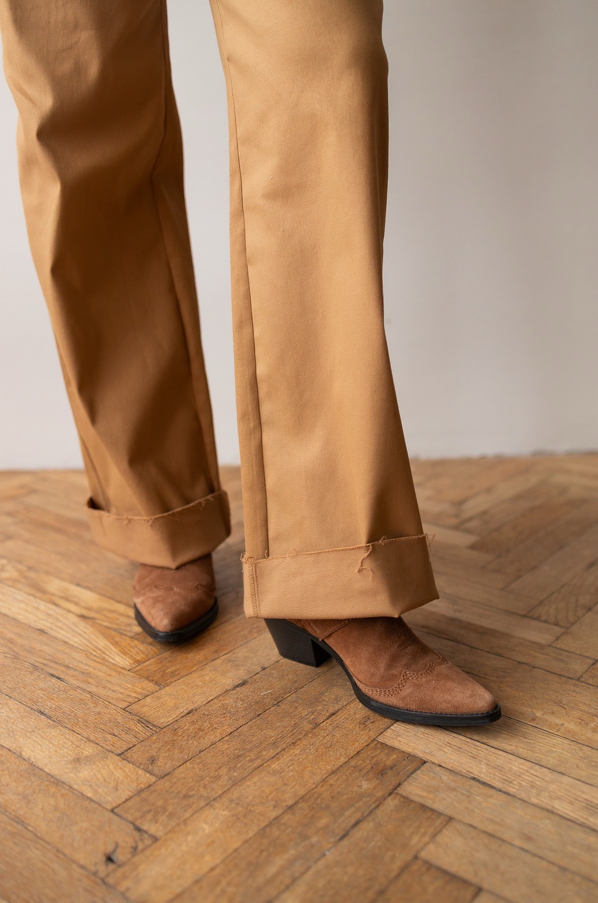 Важно: брюки садятся в длину на 8-10 сантиметров. Мы сделали запас на усадку. Укорачивайте брюки под свой рост только после стирки. Сочетайте их с футболкой, лонгсливом, джемпером или блузкой и будьте уверены в себе.