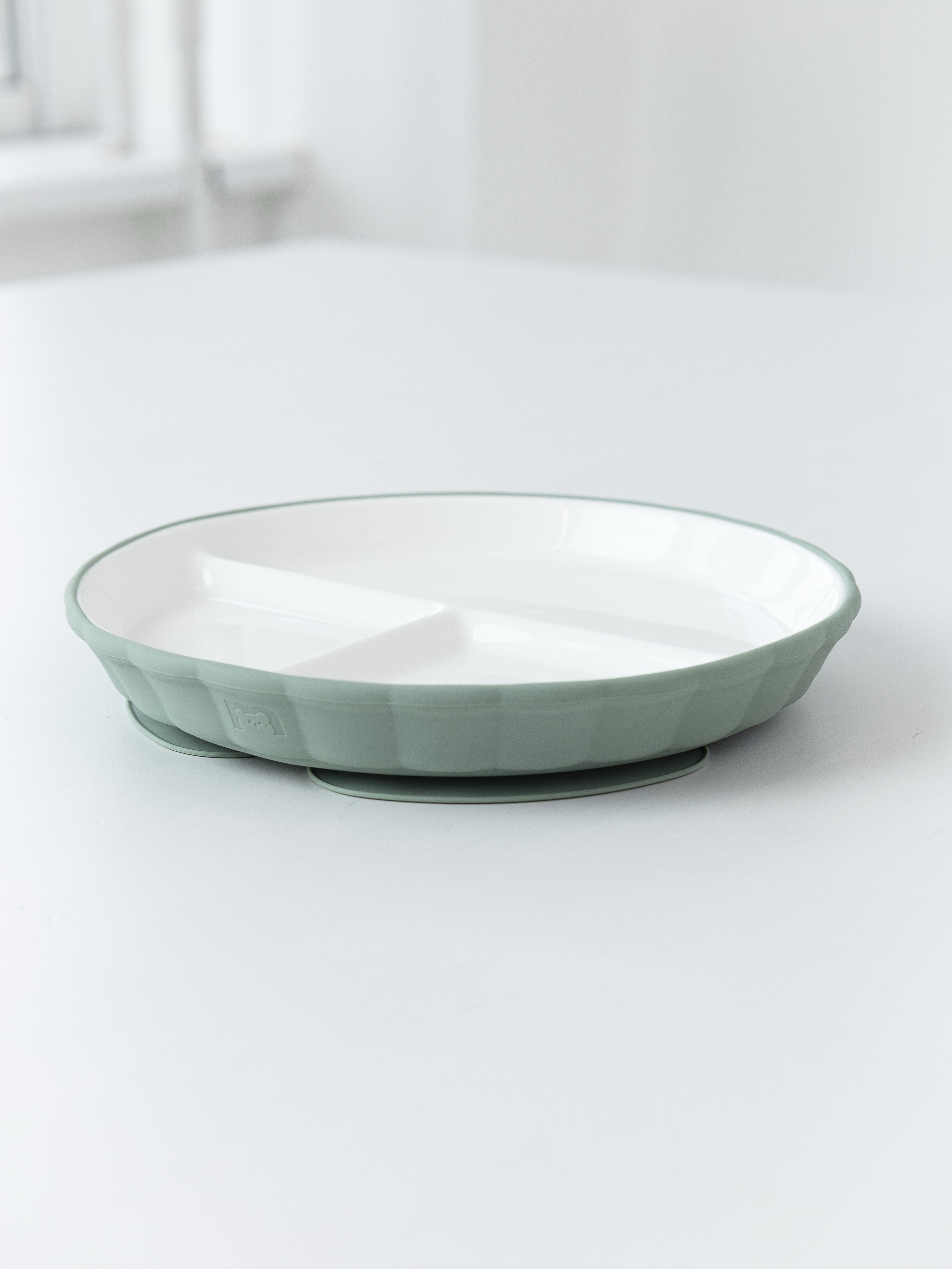 Тарелка фарфоровая на силиконовой присоске секционная идеально подходит как посуда для прикорма, кормления и самостоятельных приёмов пищи для малыша от 6 месяцев.