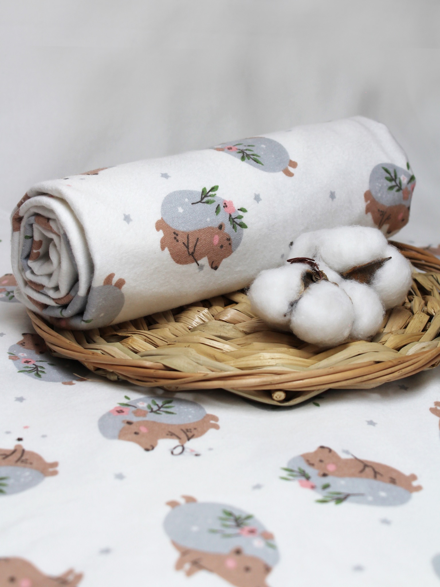 Пеленка изготовлена из 100 % хлопка (фланель).