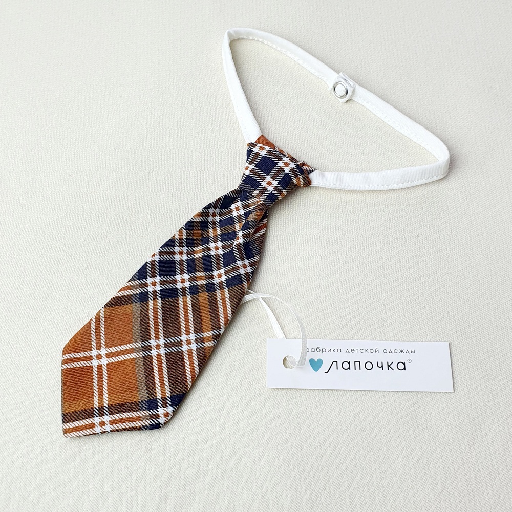 Декоративный галстук в клетку — аккуратный аксессуар, который добавляет образу завершённость. Модель выполнена на удобной мягкой ленте с застёжкой, поэтому галстук легко надевать и снимать. Расцветка подобрана так, чтобы идеально сочетаться с отделкой рубашки и коричневым комплектом.
