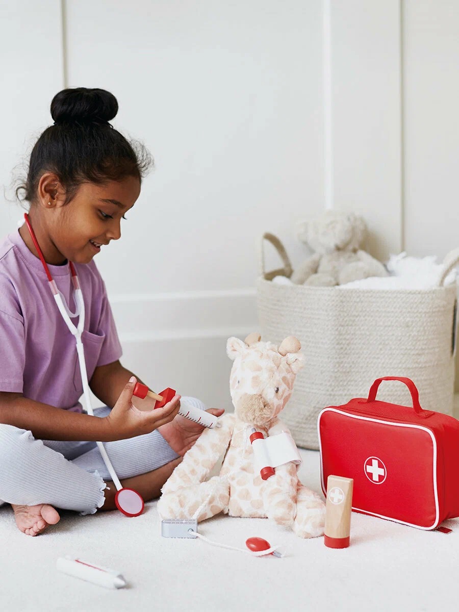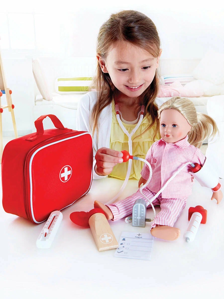 • Включает деревянные предметы, которые напоминают инструменты, как у настоящего врача.