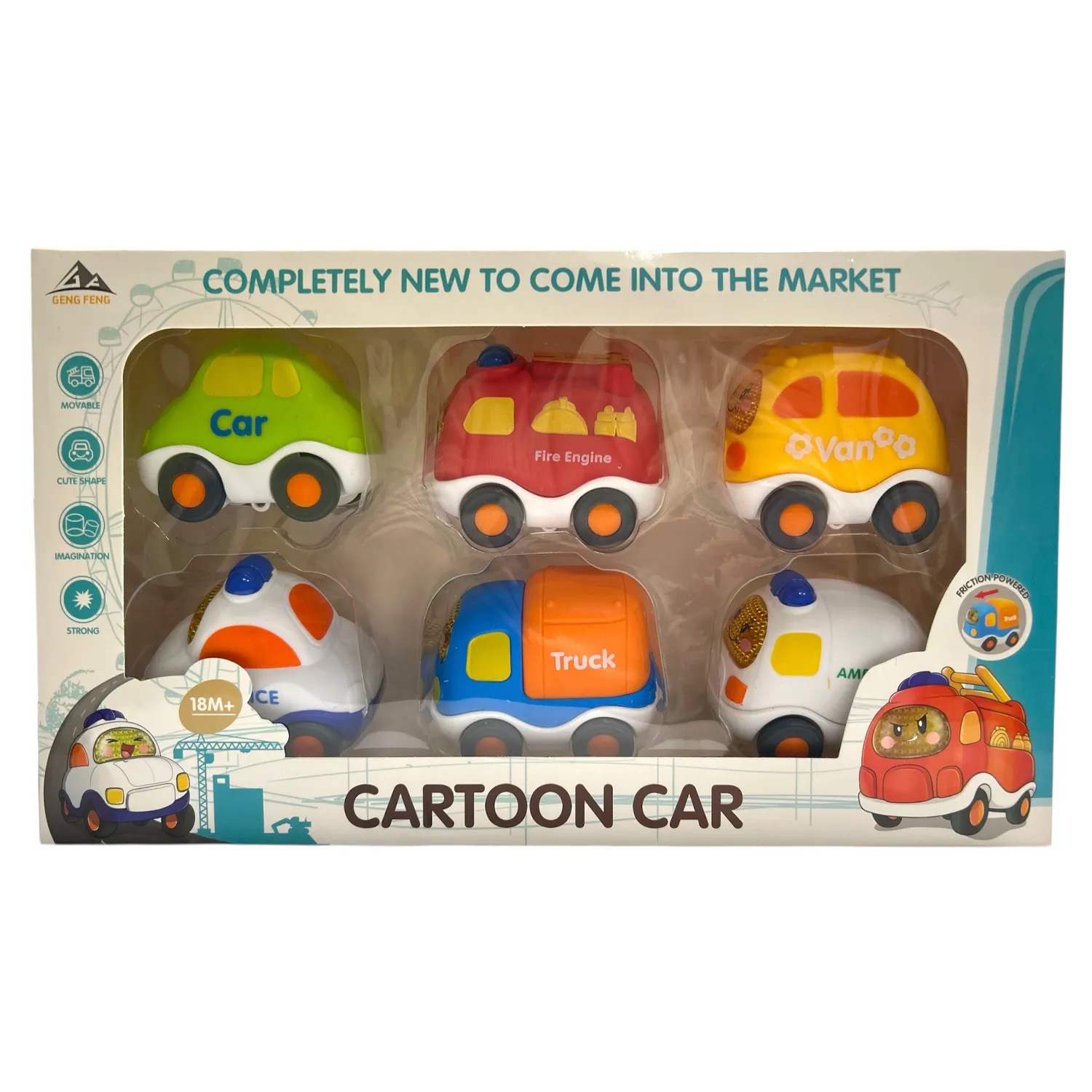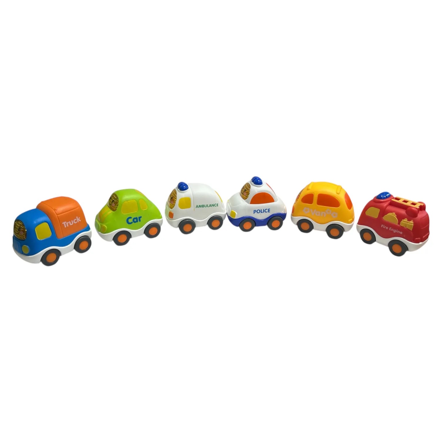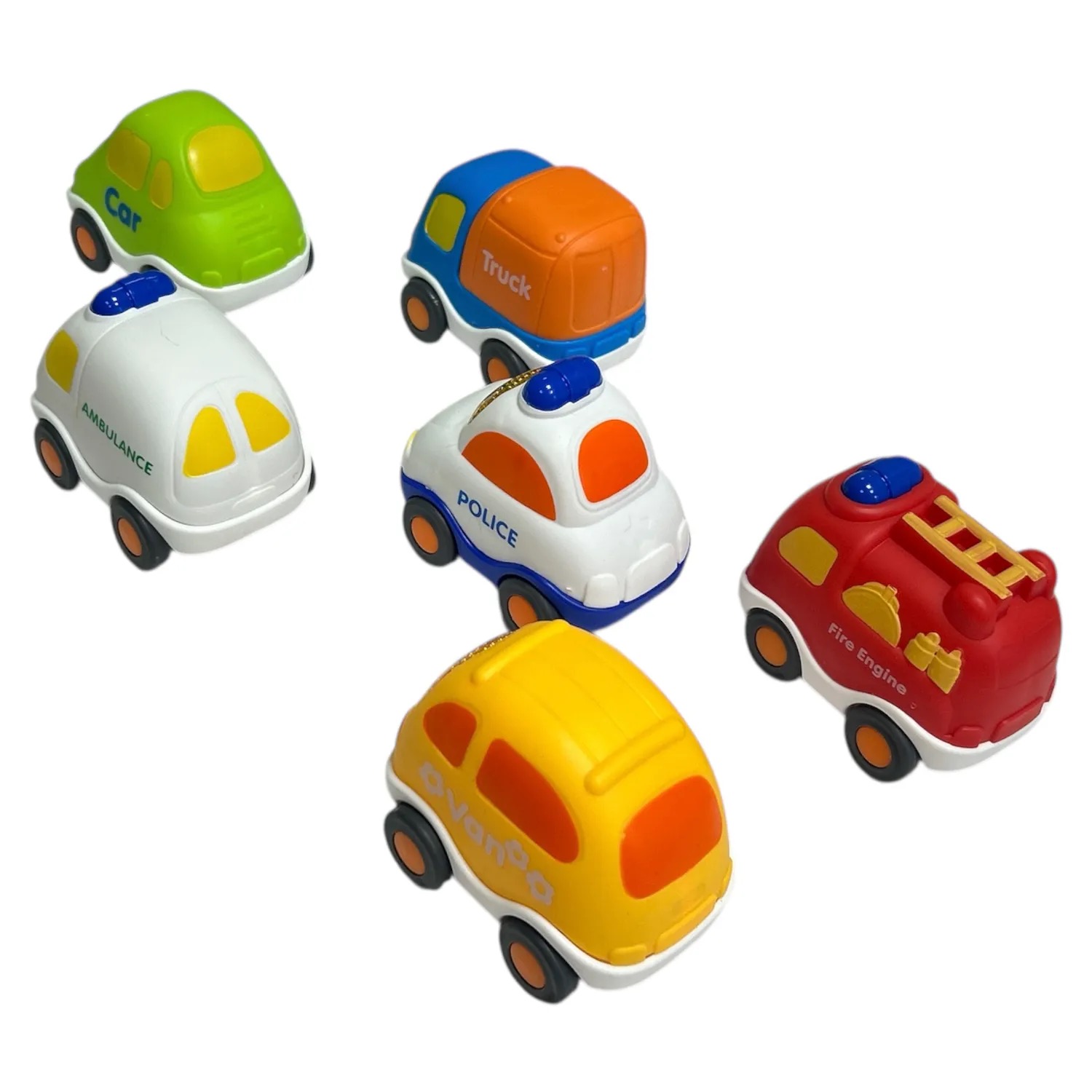 Набор состоит из шести ярких и безопасных машинок, выполненных из био-пластика. Каждая модель имеет уникальный дизайн и оформление, что делает их привлекательными для детей. Машинки представлены в различных цветах: зеленая легковая, красная пожарная с автолестницей, белая полицейская и желтая машина скорой помощи.