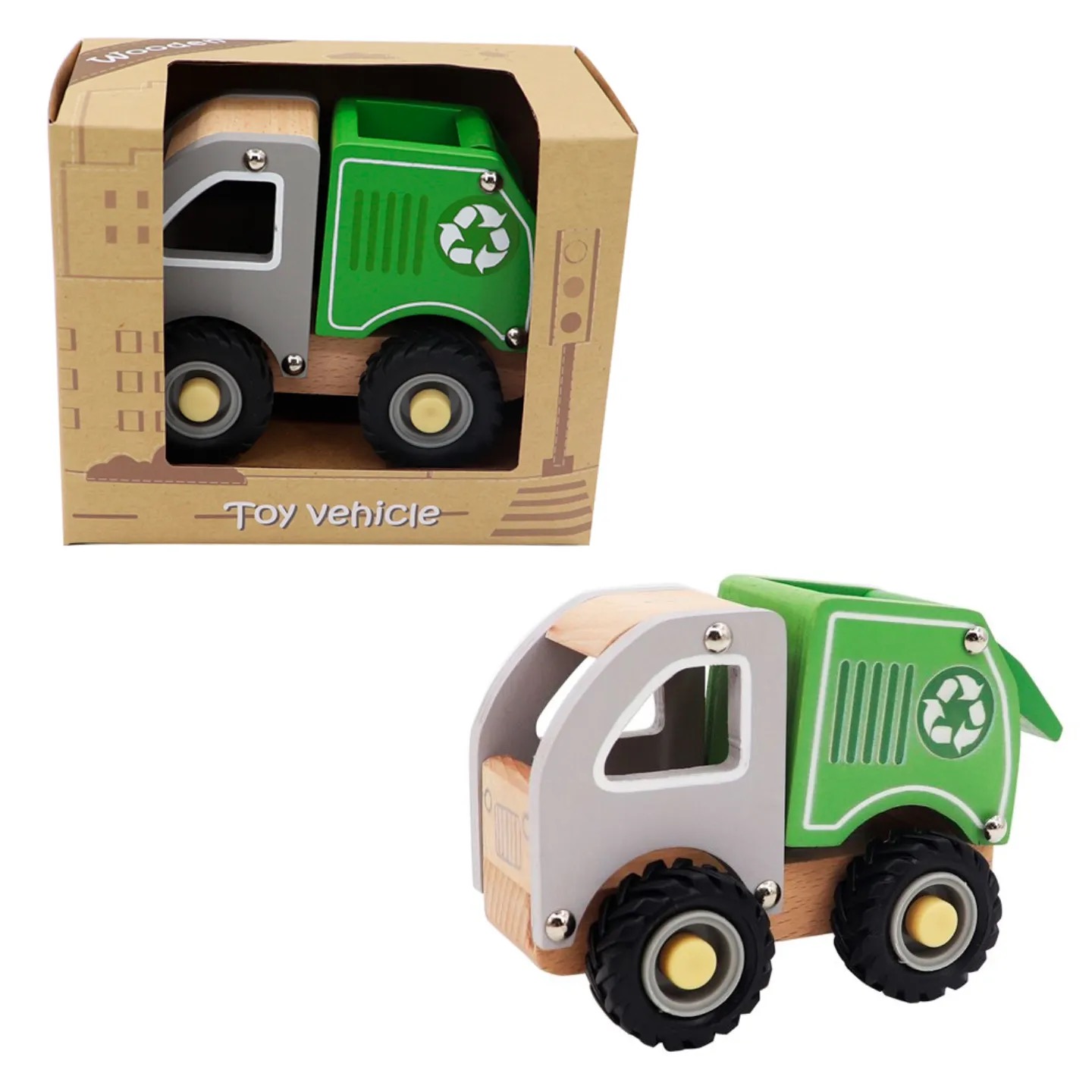 Игрушечная машинка Детское Время - Мусоровоз (без механизмов, фигурка не съёмная, материалы: дерево, металл, пластик, резина), серия Vehicles, возраст 1+
