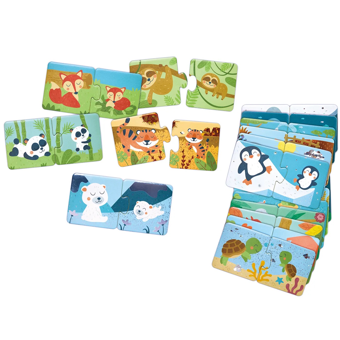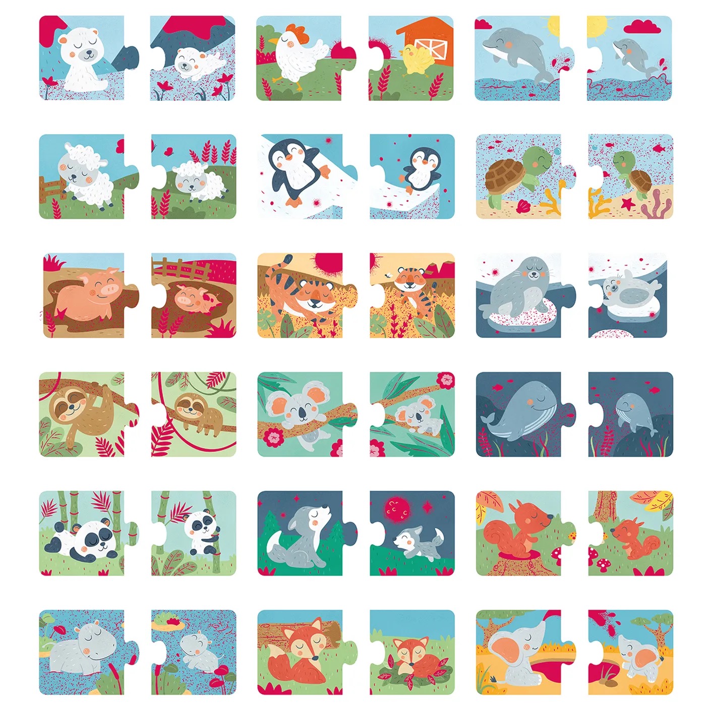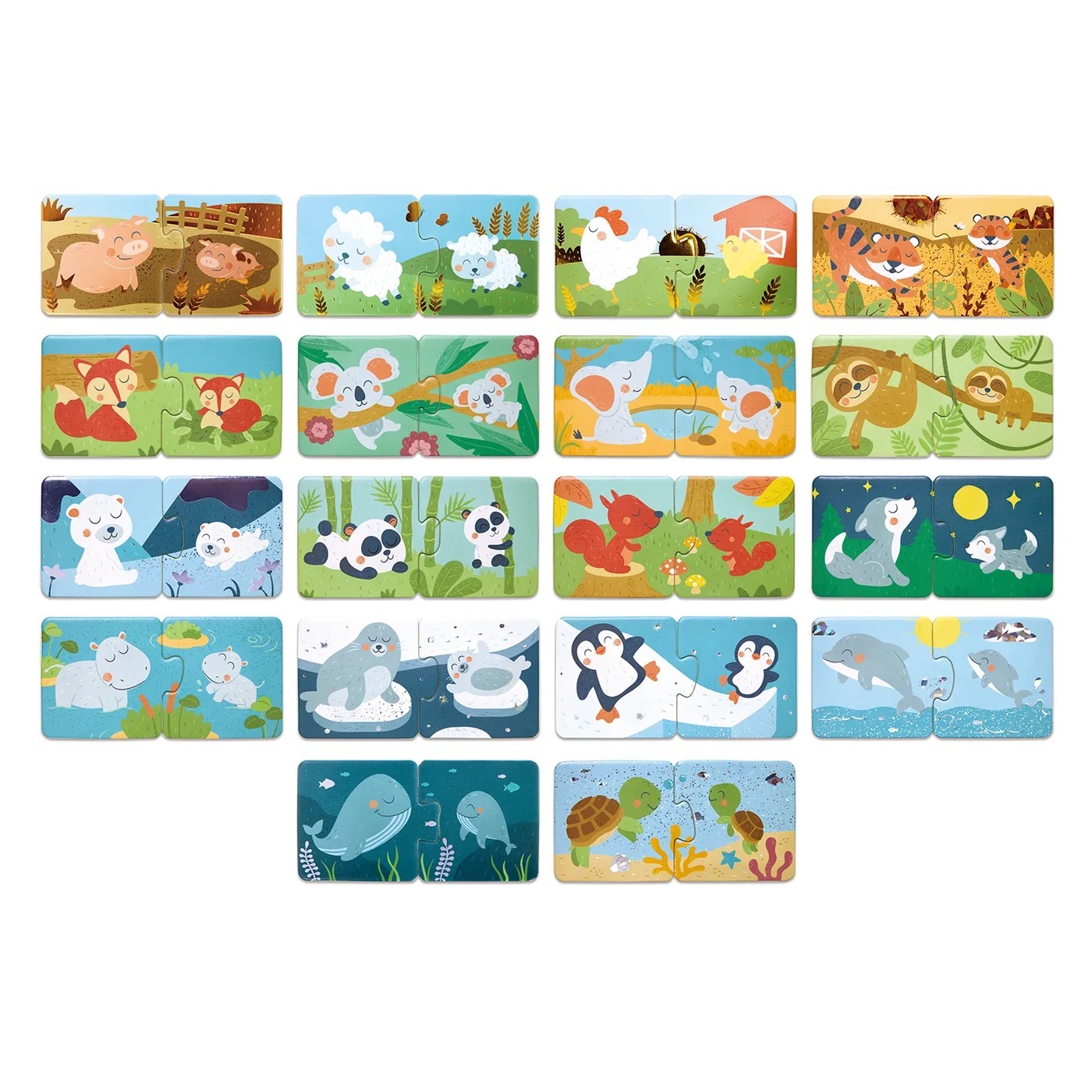 Сложите 18 красочных картинок из 36 кусочков и наблюдайте, как Ваш ребенок учится находить пару для каждого зверька. Все детали удобны для маленьких ручек, имеют закругленные края и подарят множество приятных минут игры вместе!