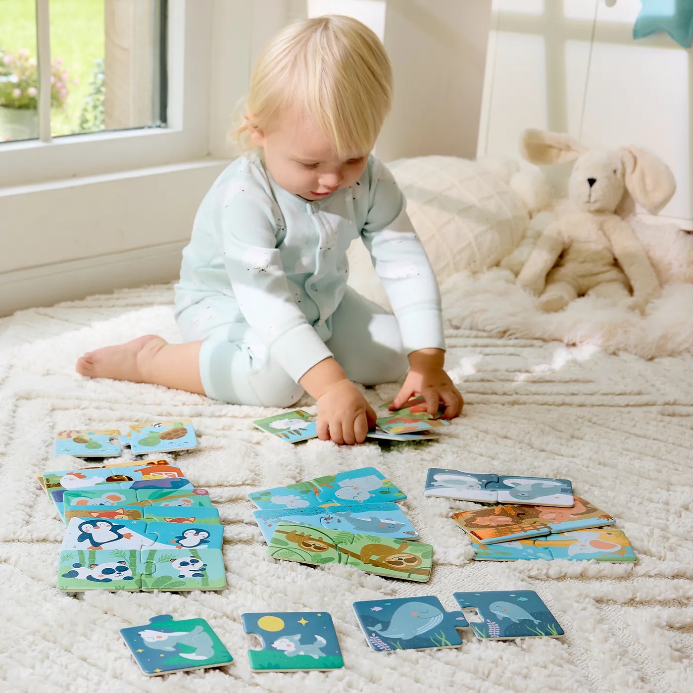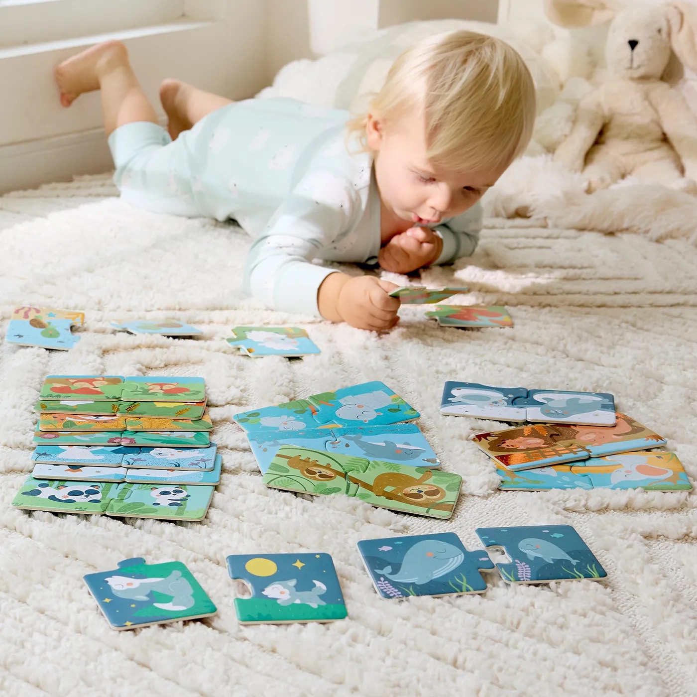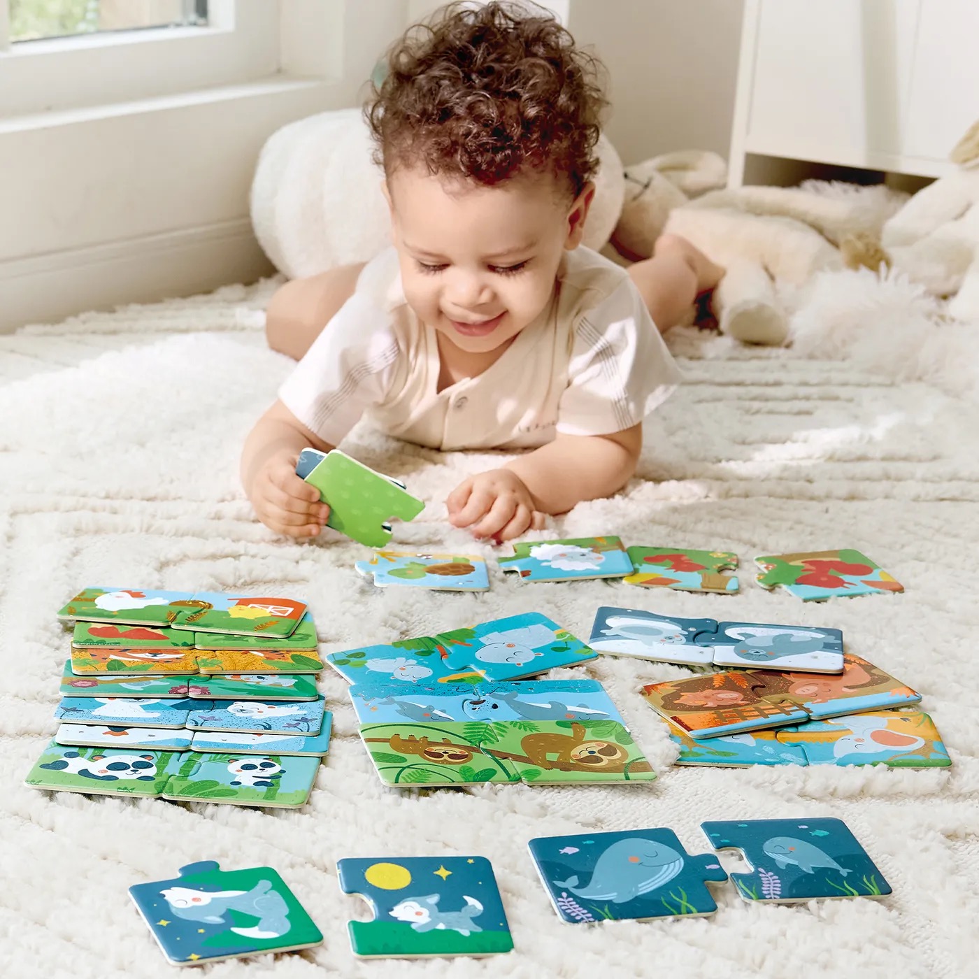 Сложите 18 красочных картинок из 36 кусочков и наблюдайте, как Ваш ребенок учится находить пару для каждого зверька. Все детали удобны для маленьких ручек, имеют закругленные края и подарят множество приятных минут игры вместе!