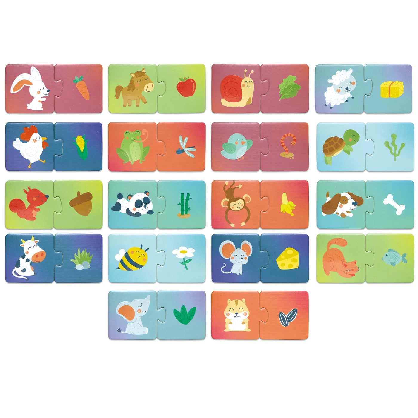 Кто что ест? Сложите 18 красочных картинок из 36 кусочков и наблюдайте, как Ваш ребенок учится находить еду для каждого зверька. Все детали удобны для маленьких ручек, имеют закругленные края, что делает их безопасными для использования и игры.