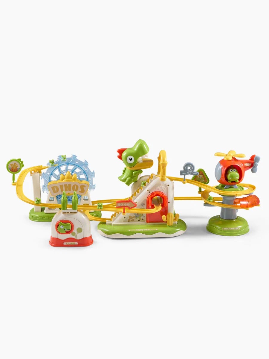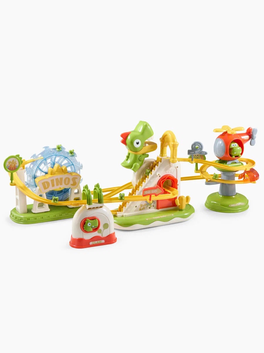 Интерактивный DINOPARK от Happy Baby – это целый парк юрского периода, где оживают игрушечные динозавры. Это не просто игрушечный трек, а полноценная развивающая игрушка от 3 лет для мальчиков и девочек, которая подарит малышу часы увлекательной игры. Ключевые преимущества: • Вариативность сборки – ребенок может собрать собственную уникальную композицию парка. Соединяя элементы трека и платформы по принципу детского конструктора, малыш развивает пространственное мышление, фантазию и конструкторские навыки. • Автоматический механизм с подъемником – в игровой набор входит специальная лестница, поднимающая на вершину фигурки динозавров, которые затем скатываются по спиралевидным трекам. Это создает завораживающее зрелище, развивающее зрительное восприятие и концентрацию внимания. • Звуковое и световое сопровождение – игрушка оснащена реалистичными звуками динозавров, которые способствуют развитию слухового восприятия и чувства ритма, а световой эффект делает развивающий трек визуально привлекательным • Яркий дизайн и безопасность – игрушка выполнена из прочных и безопасных материалов, которые имеют эргономичную форму, подходящую для детских рук.
