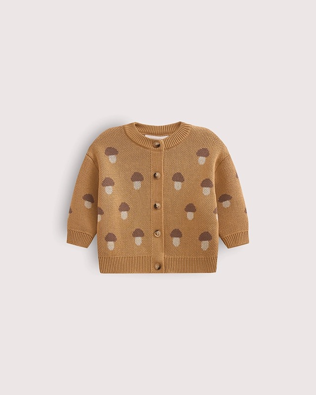 Вязаный кардиган с грибочками станет желанной находкой, которую захочется отправить в осеннюю корзинку для покупок.