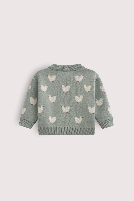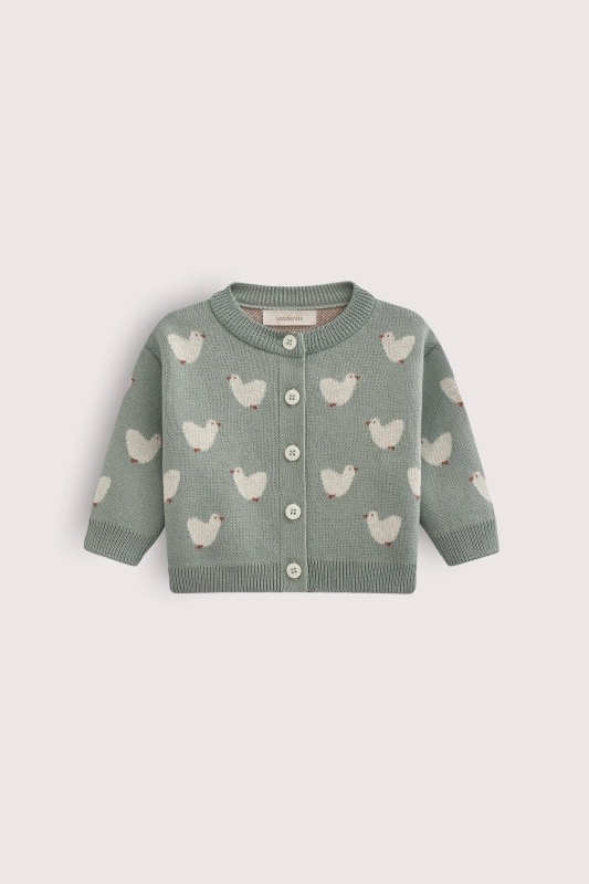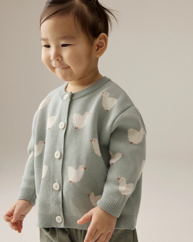 Очаровательный кардиган с уточками поднимет малышам настроение в хмурые дни и согреет в +15 °C.
