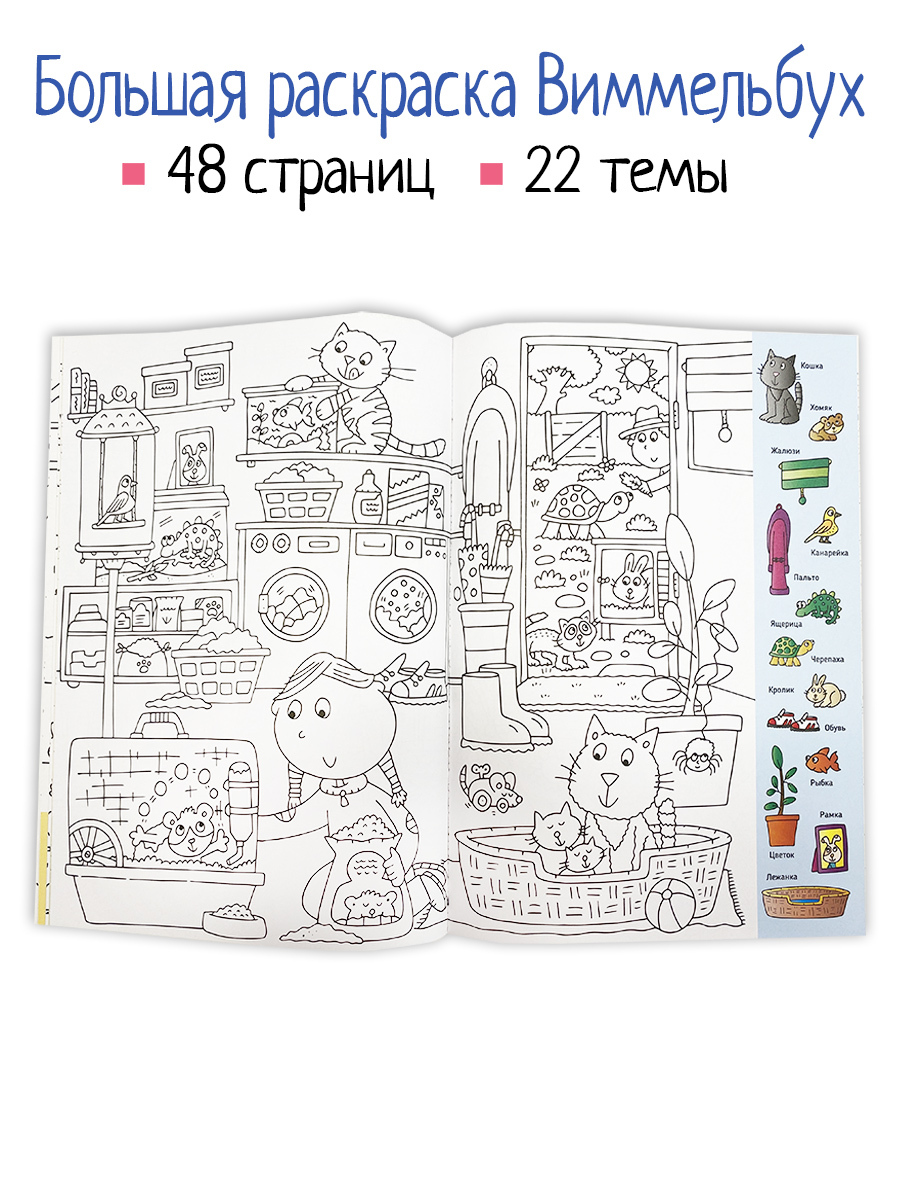 Большая развивающая раскраска познакомит ребенка с многообразием морских, домашних, экзотических животных; дикой природой; космосом; видами и назначением различных транспортных средств; различными профессиями и тд