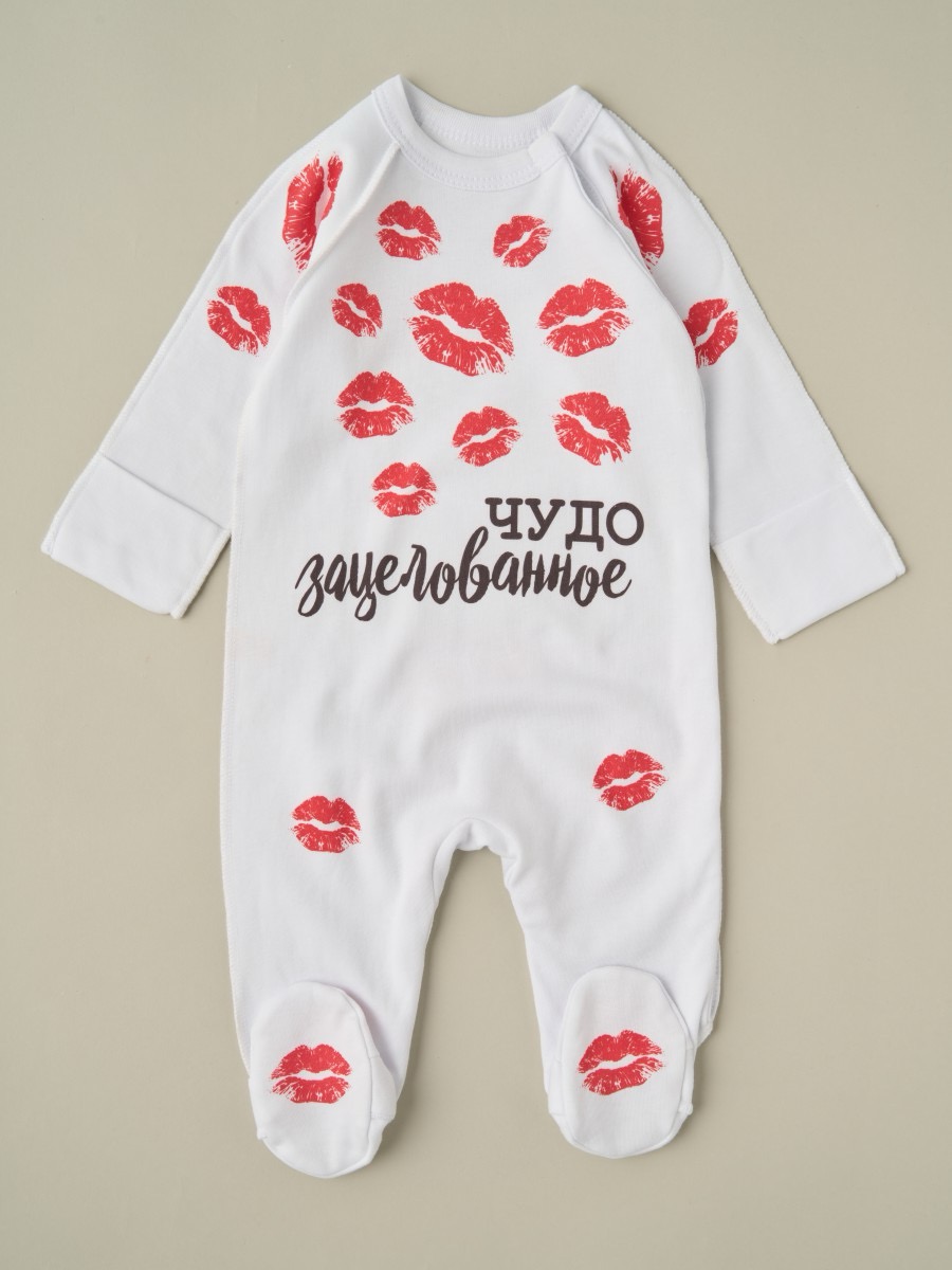 Комбинезон 100% хлопок с принтом — мягкий детский комбинезон с закрытыми ножками и боковой застёжкой на кнопках по всей длине. В размерах 56 и 62 см предусмотрены швы наружу и вшитые антицарапки для деликатной кожи новорождённого. Стойкий рисунок: принт не трескается, не выцветает и не боится утюга.