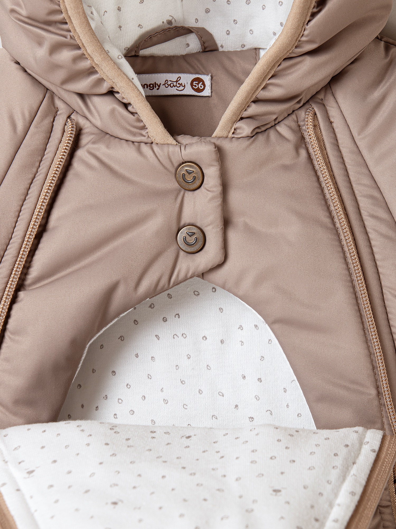 Рукава с отворотами-кармашками позволяют легко регулировать тепло, открывая или закрывая ручки малыша по желанию, что добавляет удобства в использовании.
