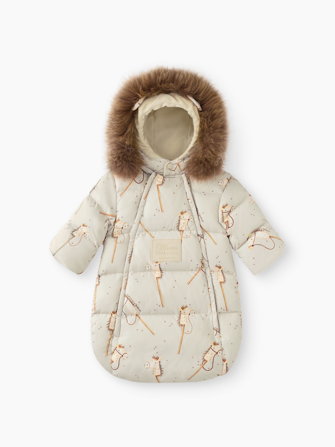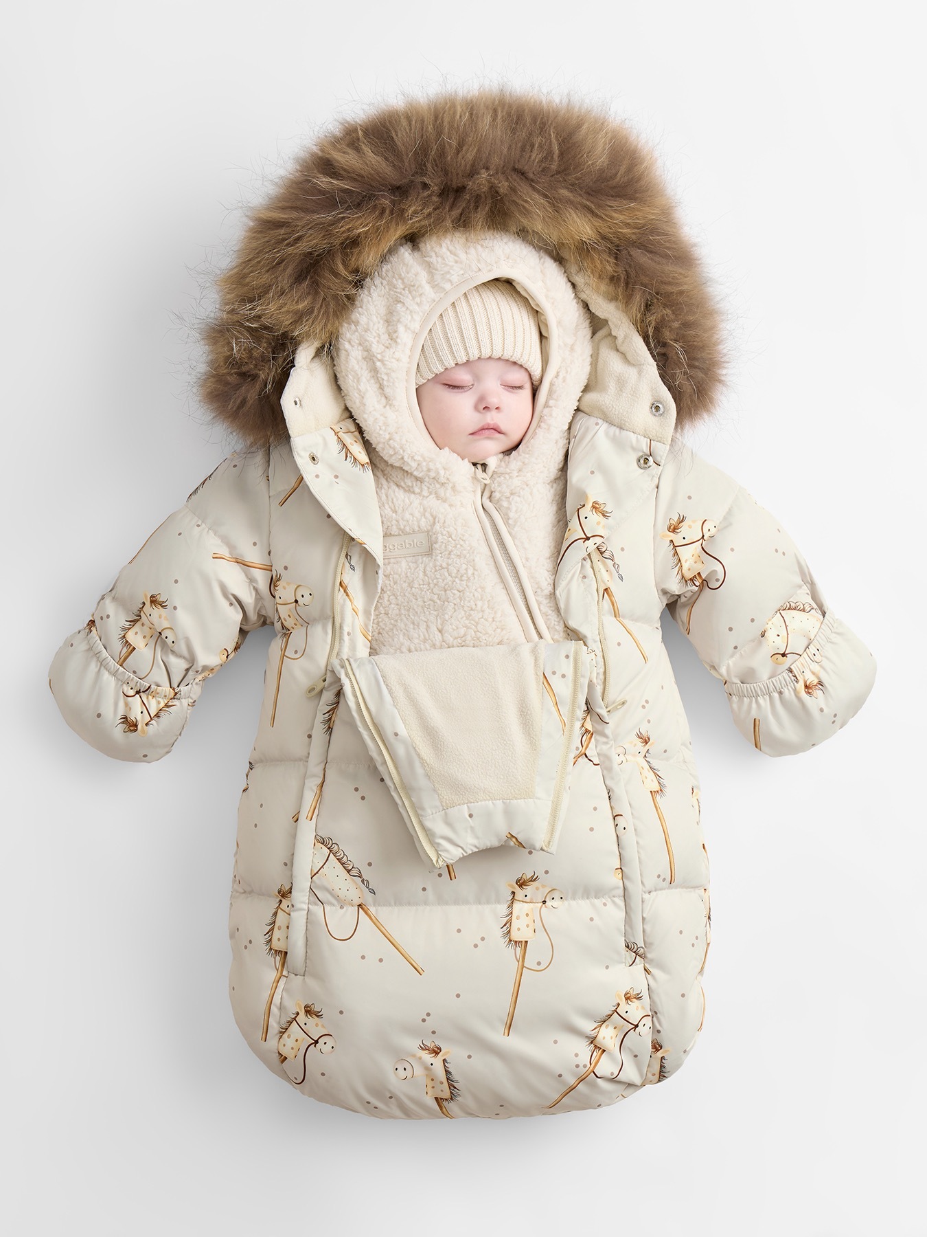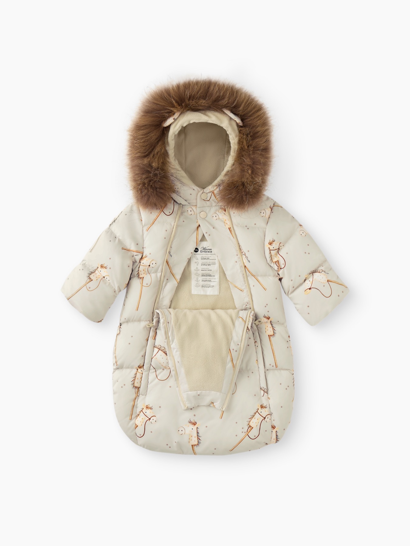 Детский зимний конверт для новорождённых обеспечивает надёжную защиту от холодного ветра и мороза.