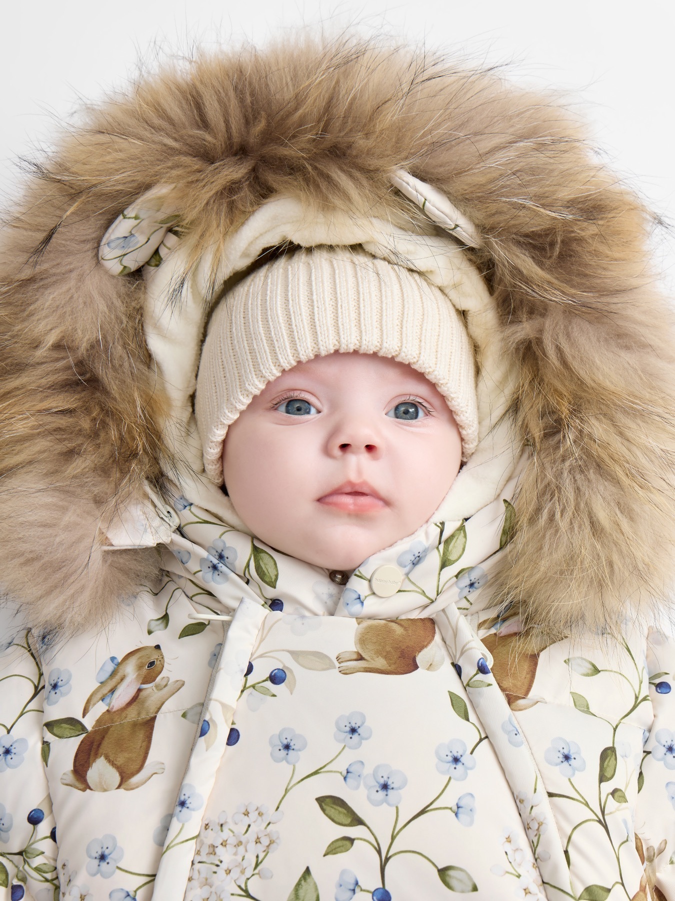 Детский зимний конверт для новорождённых обеспечивает надёжную защиту от холодного ветра и мороза.