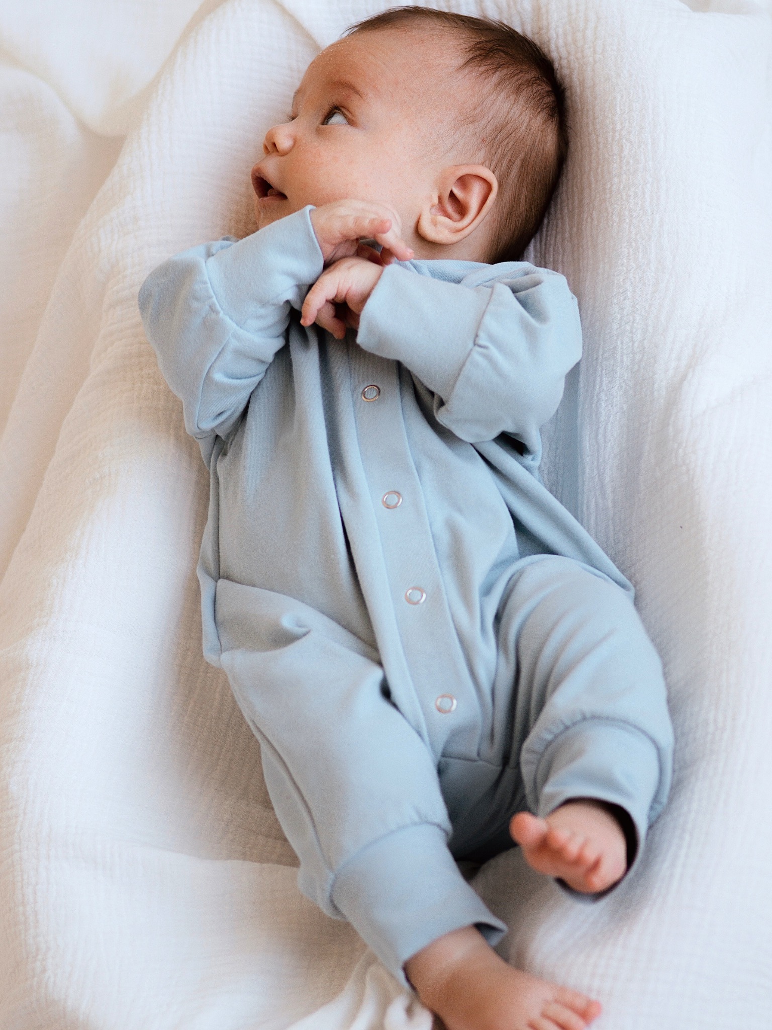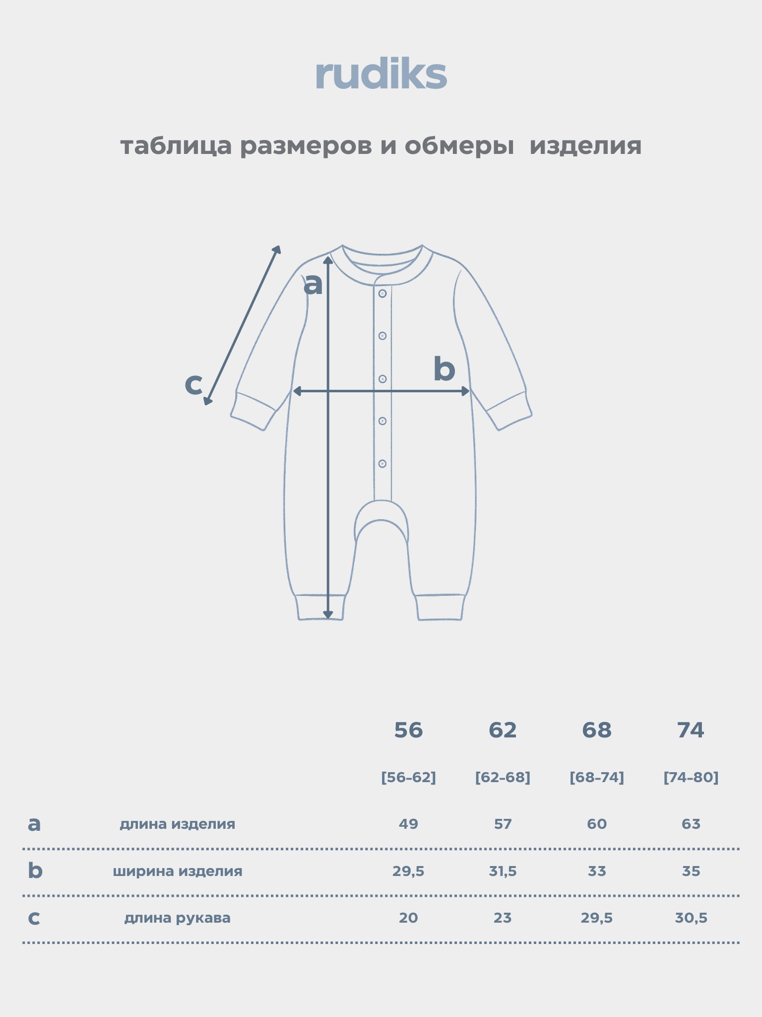 Слип комбинезон - комфортная ежедневная одежда для малыша. Такая модель обеспечивает свободу движения малыша, в то время, как он активно познает мир. Выполнен из органического гипоаллергенного хлопка. С помощью длинной планки на кнопках на передней поверхности боди - смена одежды не представляет трудностей. Увеличенные манжеты растут вместе с малышом. Наличие ластовицы - позволяет комфортно использовать изделие вместе с памперсом.