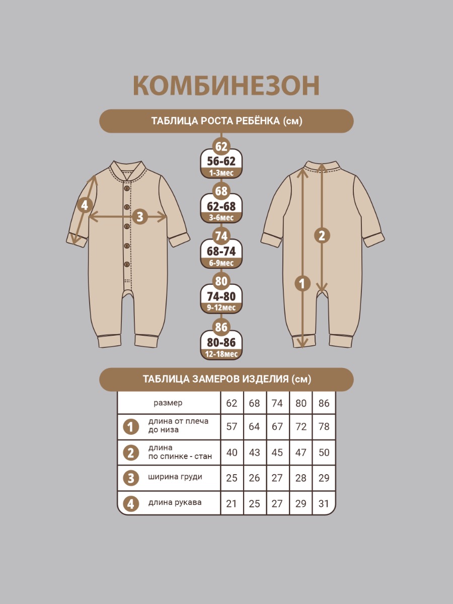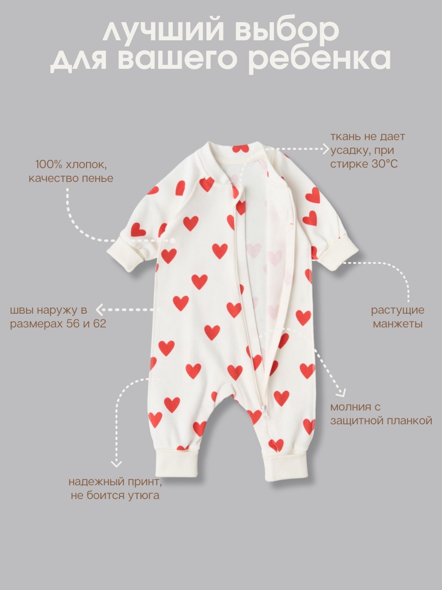 — Комбинезон 100% хлопок: натуральный, гипоаллергенный, дышащий материал.