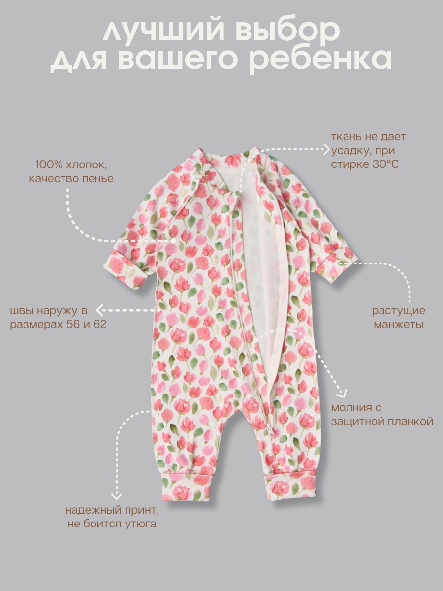 — Комбинезон 100% хлопок: натуральный, гипоаллергенный, дышащий материал.