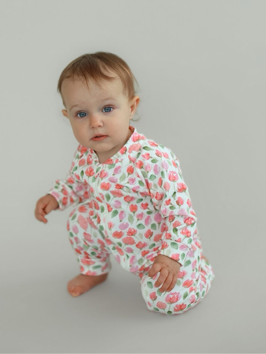 Растущий комбинезон на молнии из 100% хлопка — удобный детский комбинезон для новорождённых и малышей с мягкими удлинёнными манжетами. За счёт манжет комбинезон «растёт» и подходит сразу на 3 размера (ориентируйтесь по таблице размеров в карточке товара). Приятный к коже трикотаж, длинный рукав, центральная молния для быстрого переодевания, устойчивый принт.
