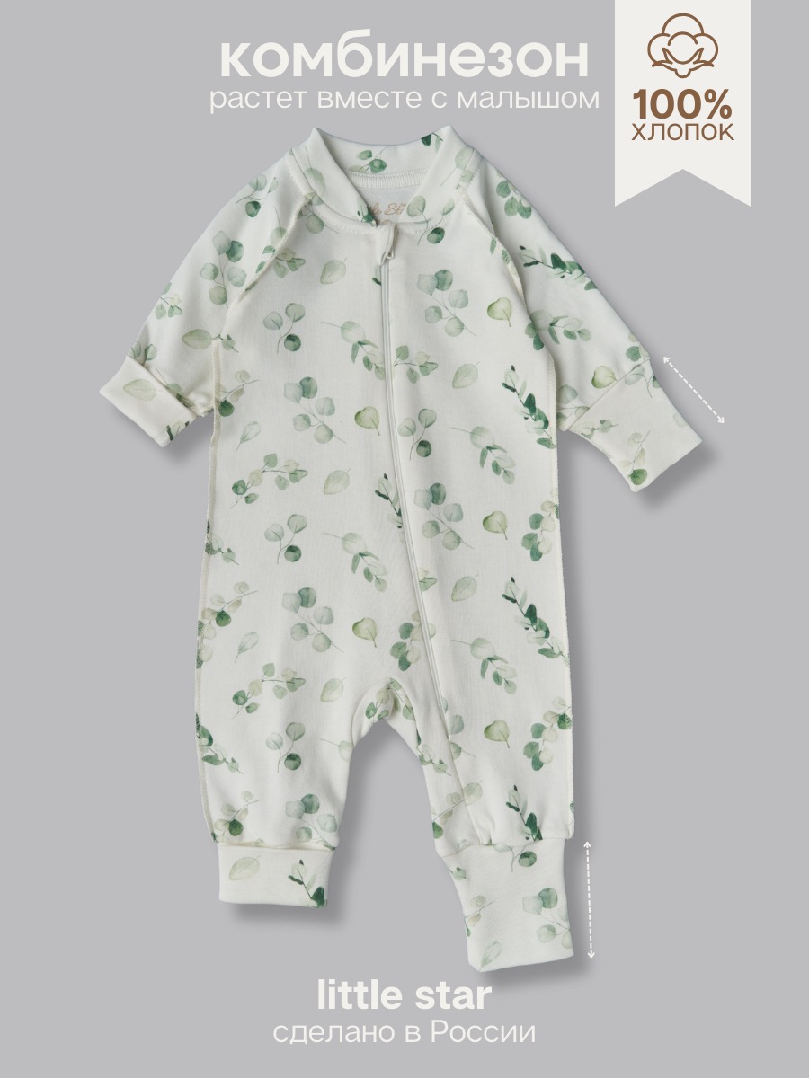 Растущий комбинезон на молнии из 100% хлопка — удобный детский комбинезон для новорождённых и малышей с мягкими удлинёнными манжетами. За счёт манжет комбинезон «растёт» и подходит сразу на 3 размера (ориентируйтесь по таблице размеров в карточке товара). Приятный к коже трикотаж, длинный рукав, центральная молния для быстрого переодевания, устойчивый принт.