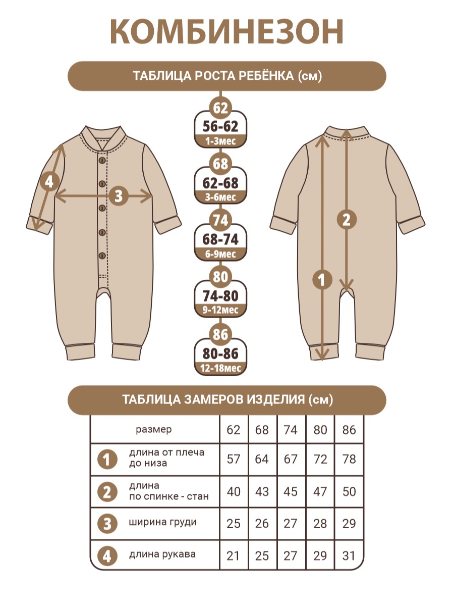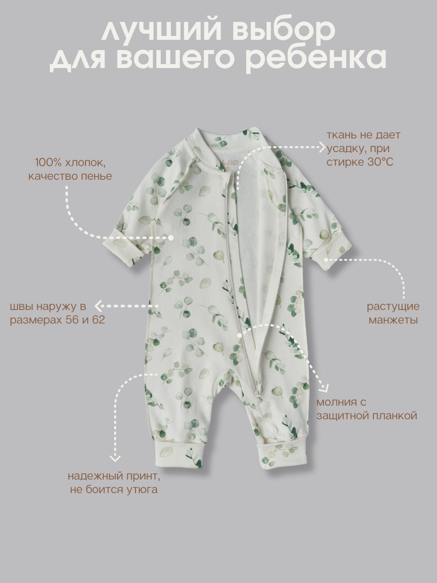 — Комбинезон 100% хлопок: натуральный, гипоаллергенный, дышащий материал.
