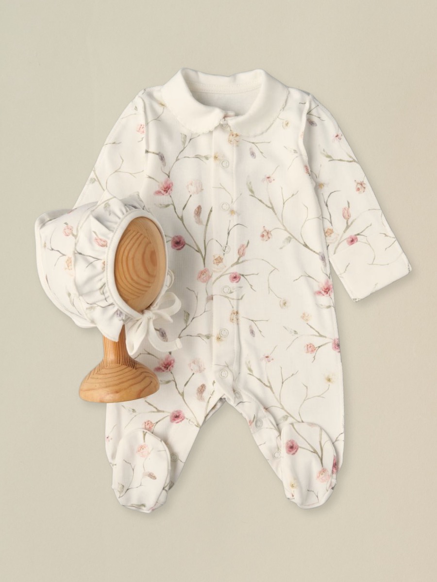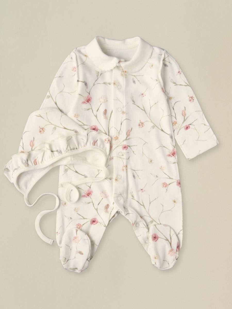 Комбинезон на кнопках из 100% хлопка (в комплекте чепчик с завязками) — мягкий детский комбинезон с закрытыми ножками и аккуратной вышивкой. В размерах 56 и 62 см предусмотрены швы наружу и вшитые антицарапки для деликатной кожи новорождённого. Натуральный хлопковый трикотаж дышит, дарит комфорт дома, на прогулках и на фотосессиях.