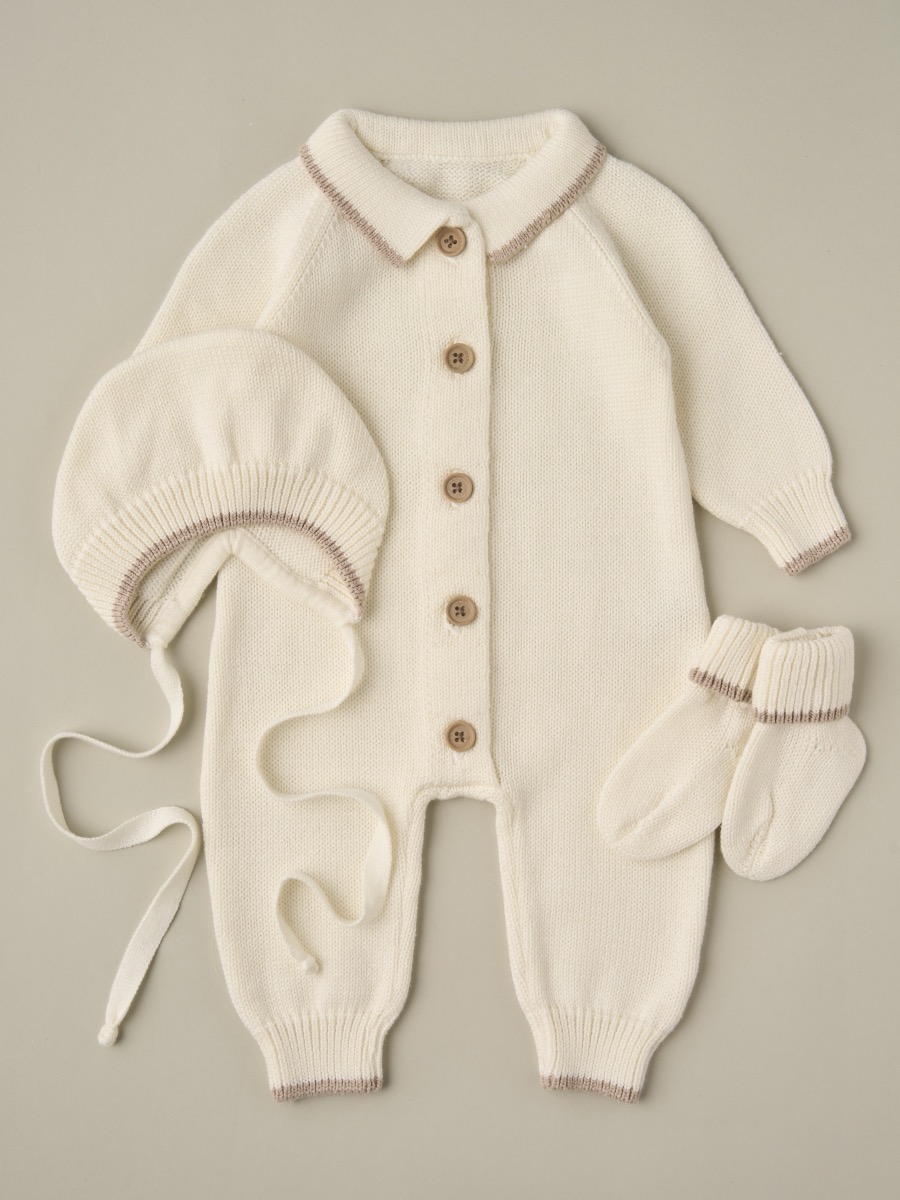 Выберите вязаный комплект из 100% хлопка — идеальное сочетание мягкости, уюта и элегантности для вашего малыша.