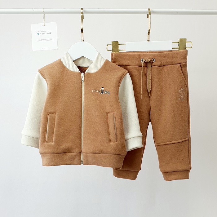 Детский костюм из двух предметов: бомбер на молнии и брюки-джоггеры. Модель выполнена с SoftTouch-эффектом — ткань особенно приятная на ощупь, а мягкий начёс внутри помогает сохранять тепло и комфорт в прохладную погоду (да, тот самый “хочется не снимать” 🧸).