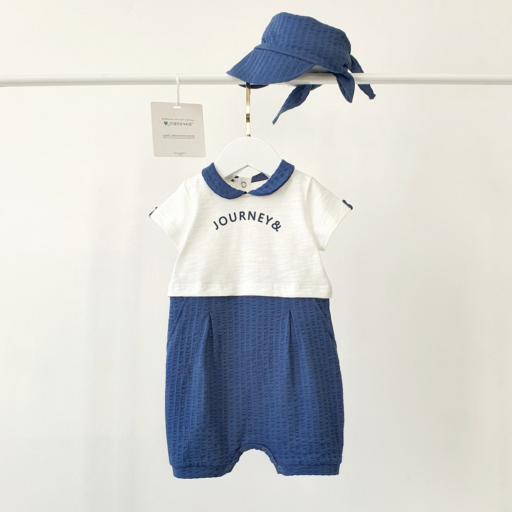 Верх с лаконичной надписью добавляет образу характер, а мягкий воротничок и фактурная ткань создают ощущение продуманности в каждой детали. Низ свободного кроя обеспечивает комфорт и не ограничивает движения, позволяя ребёнку активно познавать мир без лишних неудобств. Завершает образ лёгкая панамка, которая защищает от солнца и делает комплект ещё более выразительным.