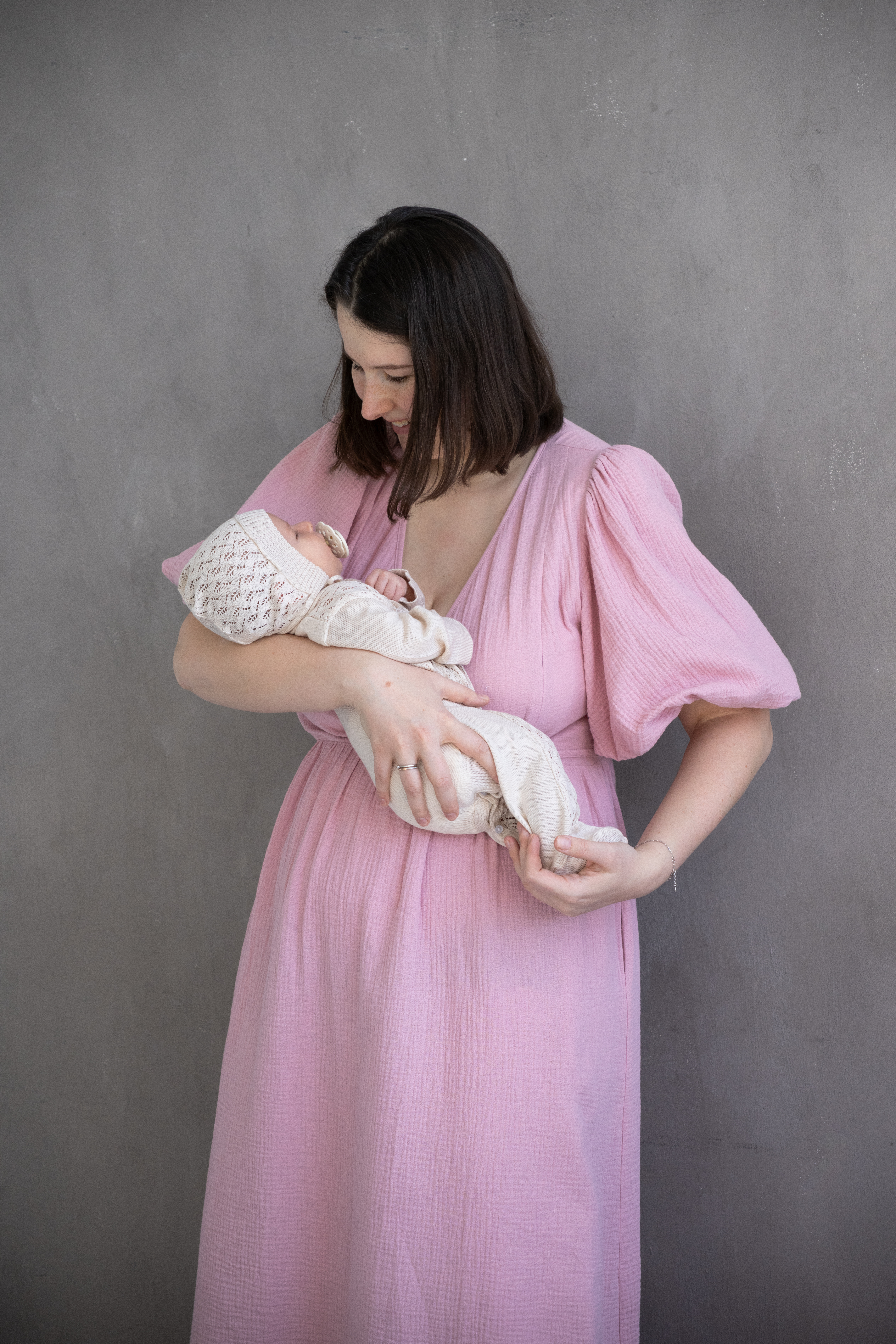 Модель продумана не только для красоты, но и для комфорта ребенка: мягкие материалы бережно соприкасаются с нежной кожей, удобный крой не сковывает движений, а чепчик аккуратно дополняет комплект. Плед делает образ особенно уютным и нарядным, а резинка помогает красиво оформить комплект для выписки и праздничной подачи.