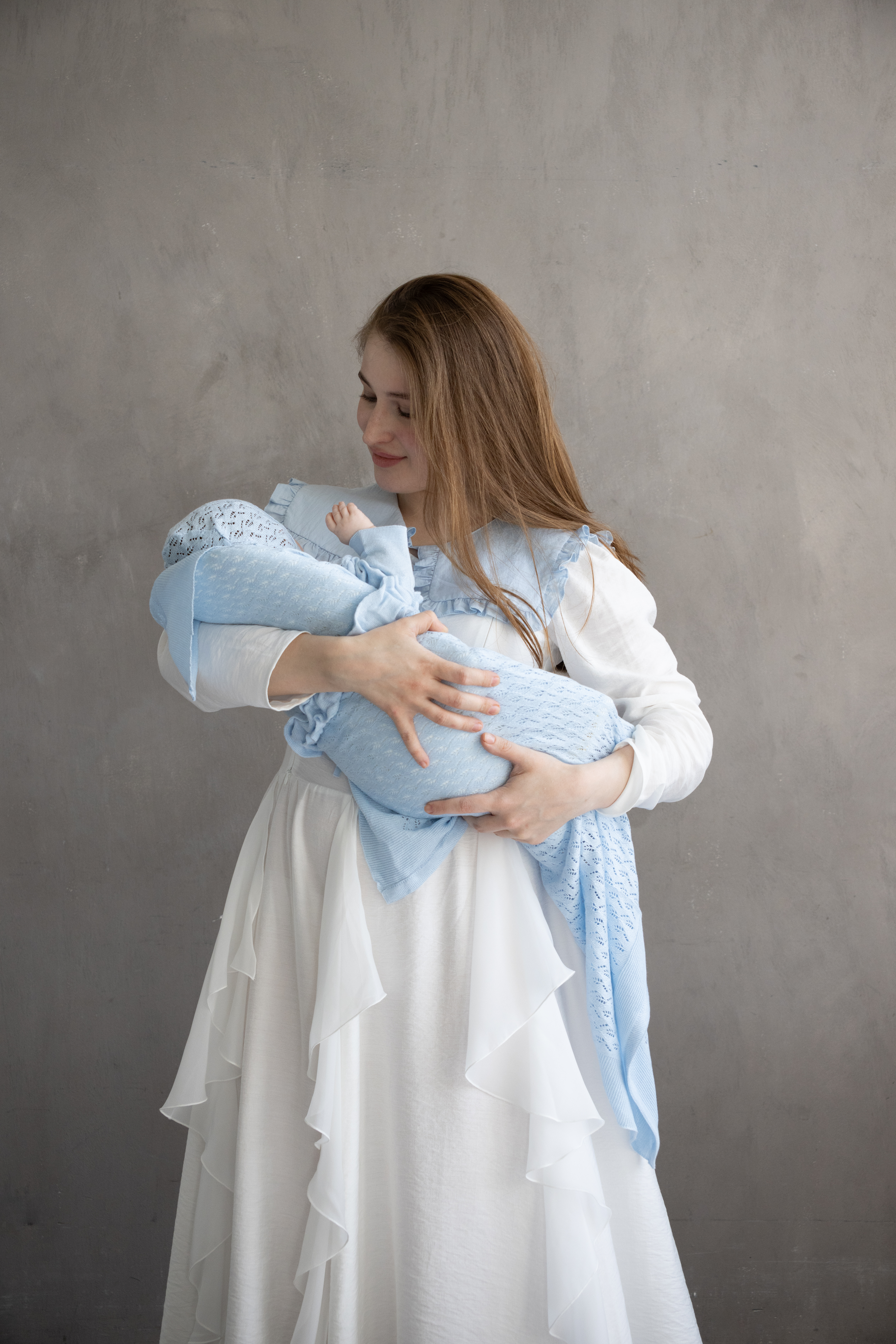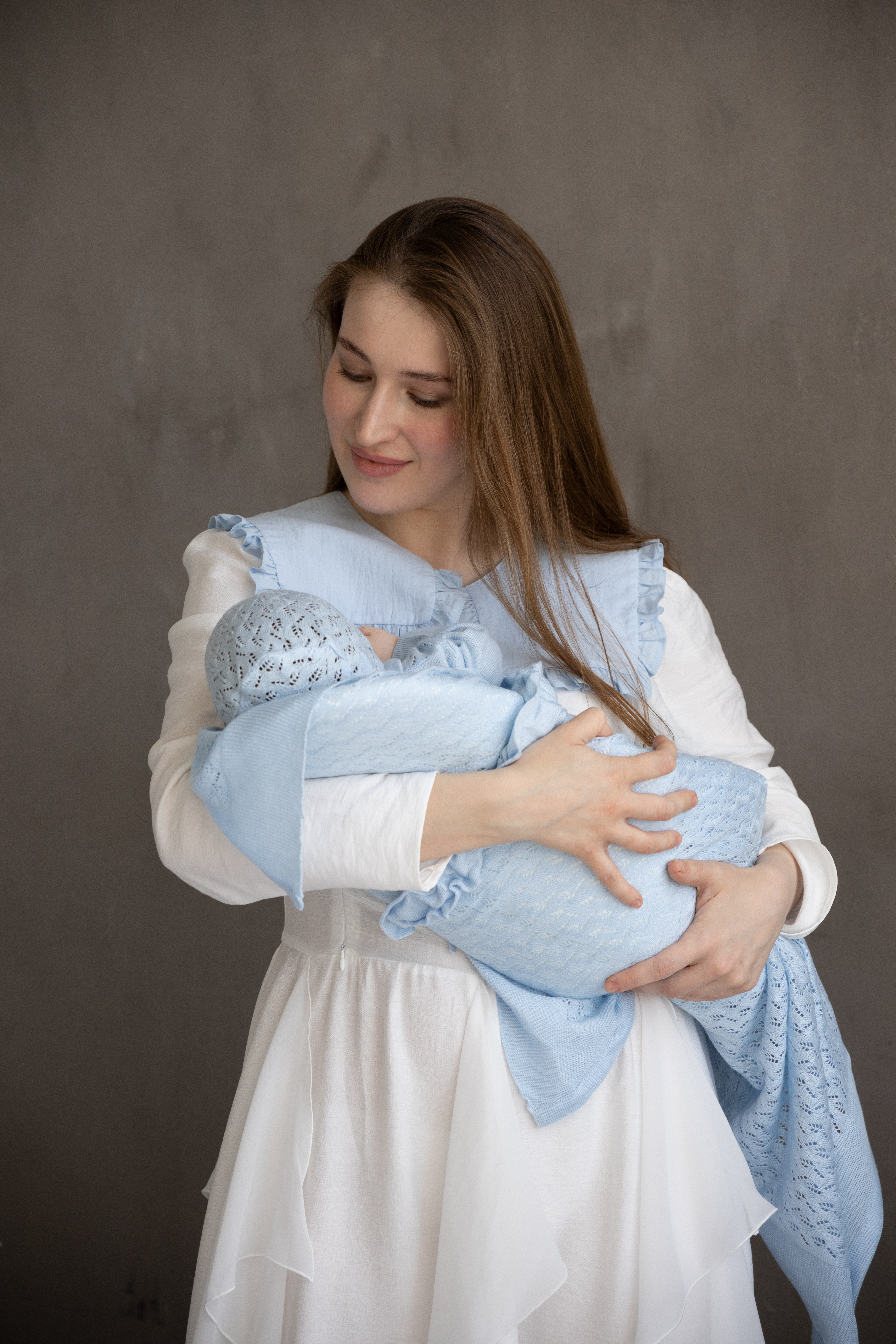 Модель продумана не только для красоты, но и для комфорта ребенка: мягкие материалы бережно соприкасаются с нежной кожей, удобный крой не сковывает движений, а чепчик аккуратно дополняет комплект. Плед делает образ особенно уютным и нарядным, а резинка помогает красиво оформить комплект для выписки и праздничной подачи.