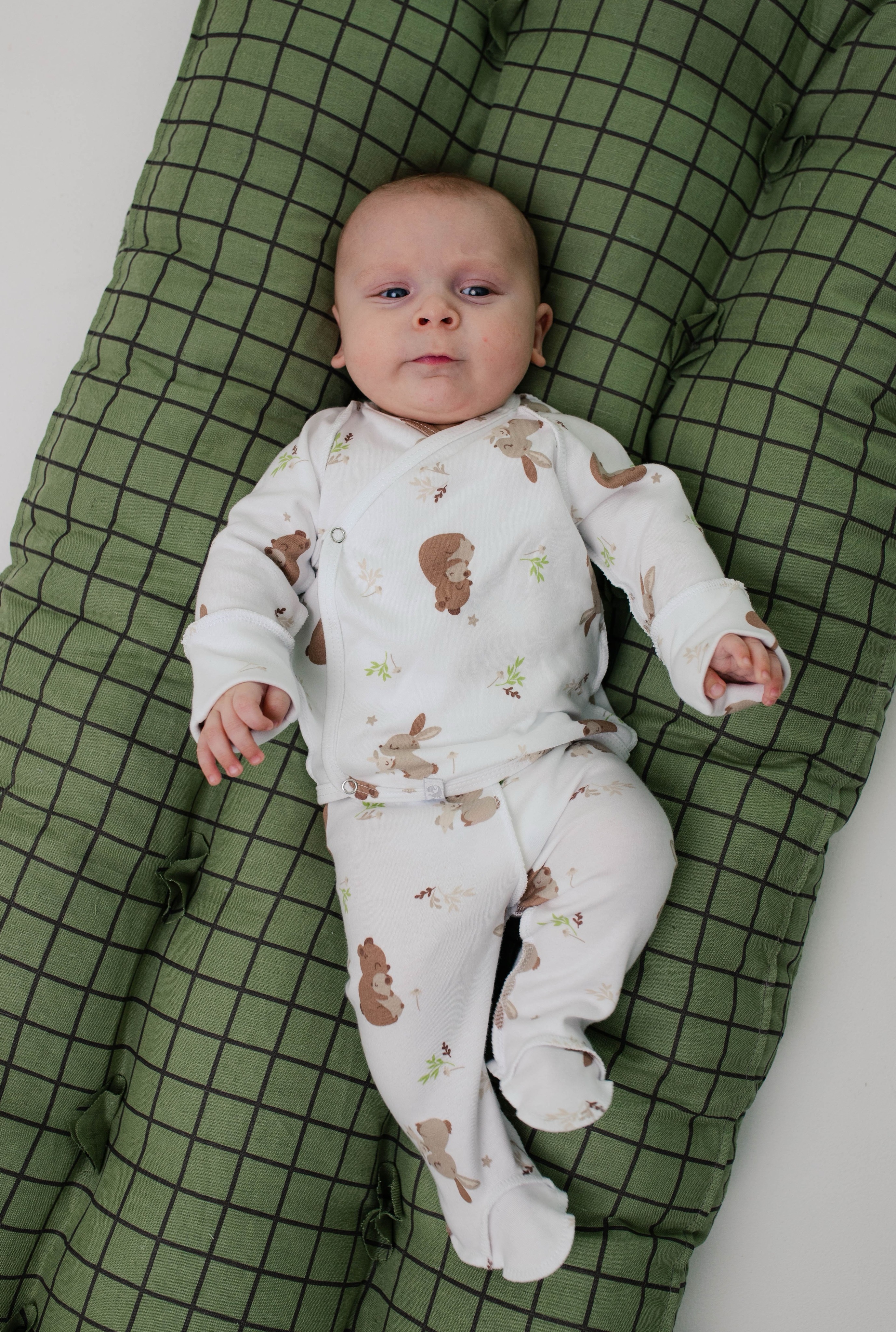 Минимум застежек для удобства переодевания малыша. Идеально для роддома, улицы и дома.