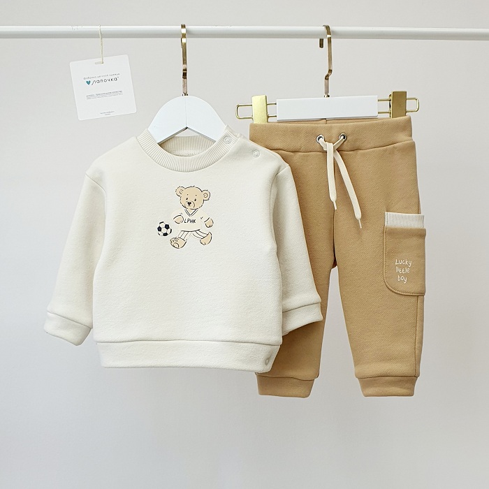 Комфортный комплект для малышей, состоящий из свитшота и брюк. Изделие выполнено с эффектом SoftTouch— ткань отличается особенно мягкой, приятной на ощупь поверхностью и подходит для ежедневной носки.