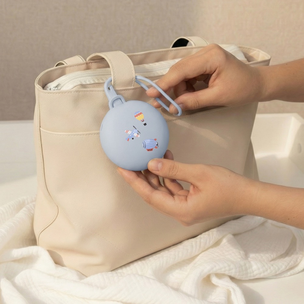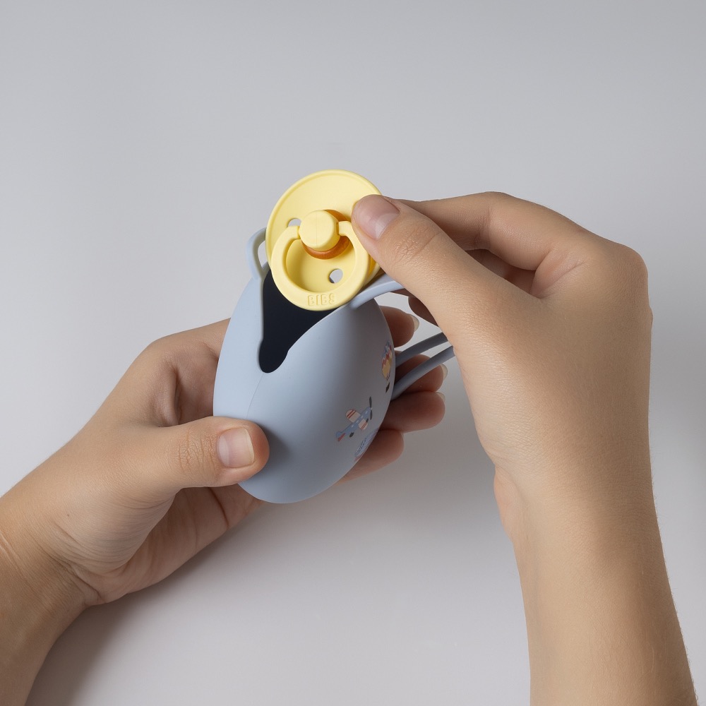 Контейнер для пустышки edda — маленький ритуал чистоты и порядка, который всегда с вами: дома, на прогулке и в дороге. Мягкий премиальный 100% пищевой платиновый силикон (BPA-free) бережно хранит до двух пустышек, защищая их от загрязнений, а кармашек с фиксатором надёжно закрывается и предотвращает выпадение.